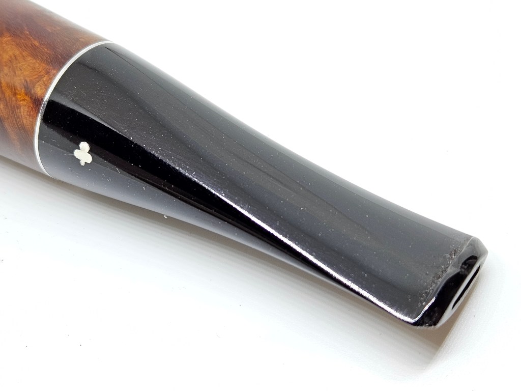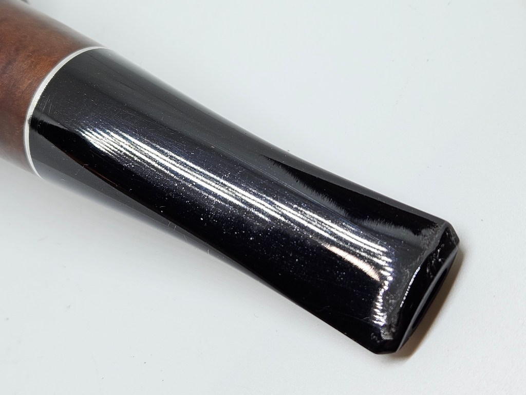 He took photos of the stamping on the sided of the shank. It is clear and quite readable. It reads as noted above. He also took a photo of the twin bands on the stem end – the brass and green acrylic band.