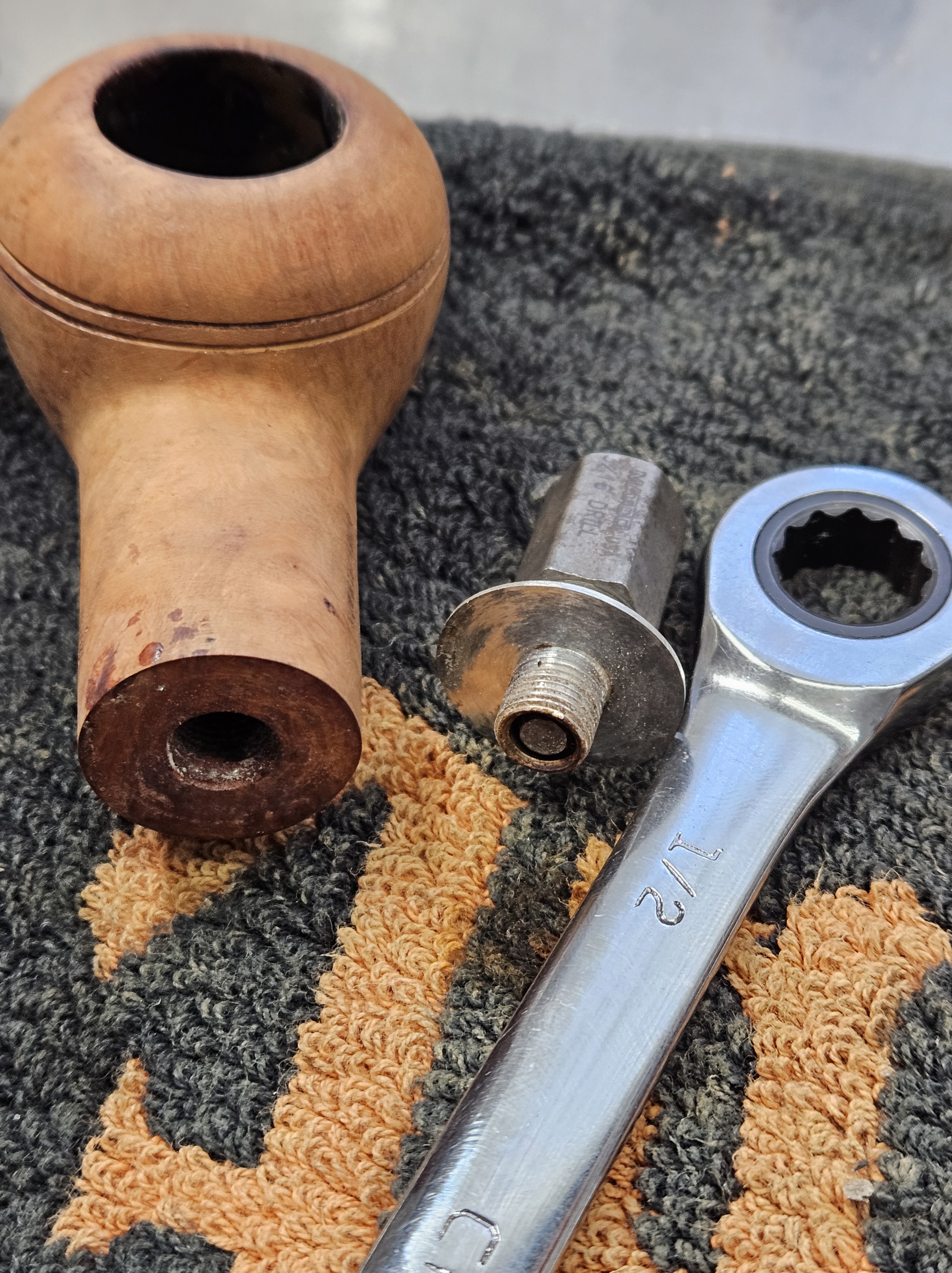 I set aside the bowl and turned my attention to the stem issues. I painted the surface of the stem with the flame of a Bic lighter to lift the tooth marks. I was able to lift all of them enough that sanding would finish blending them. I sanded the stem with 320-3500 grit sanding pads to further blend them in and smooth out the surface of the stem.