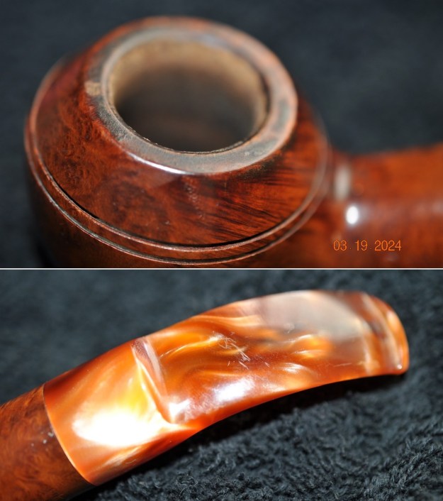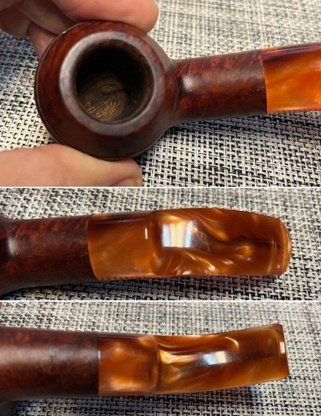 I took photos of the stamping on the sides of shank. The stamping is clear and readable (much clearer in person than the photos show). I took a photo of the pipe with the stem removed to show the overall look of stem, tenon and profile of the pipe.