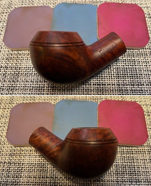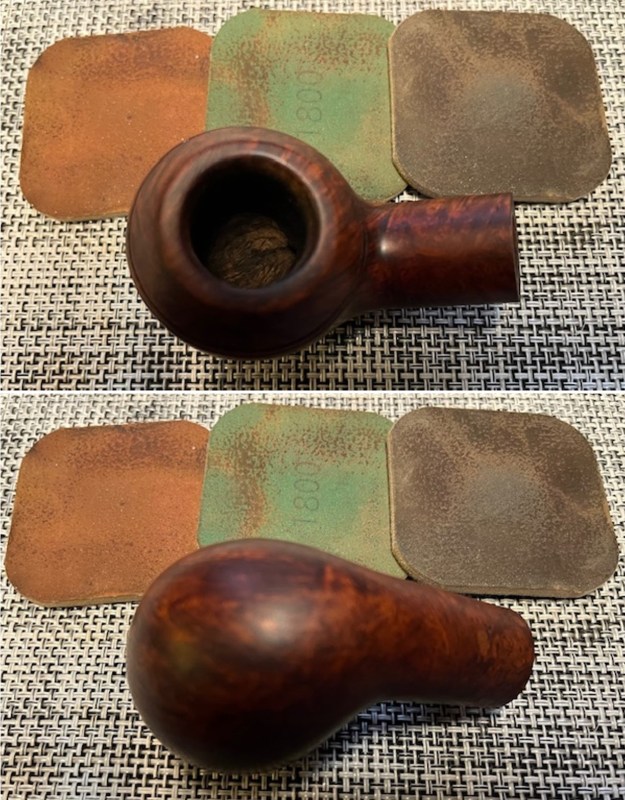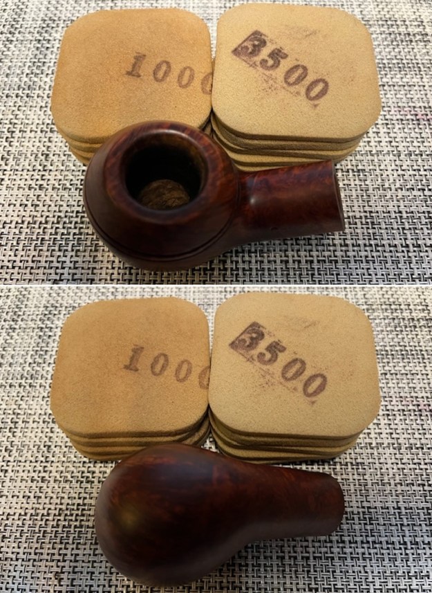 I started polishing the bowl by sanding it with 320-3500 grit sanding pads. I wiped the briar down with a damp cloth after each pad to remove the sanding dust. It looked better and the scratches disappeared.