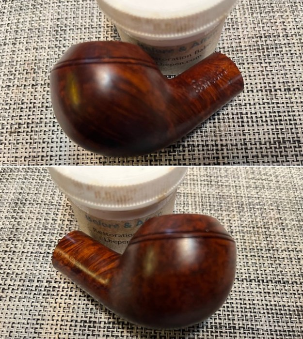 I rubbed the bowl down with Before & After Restoration Balm. I worked it into the surface of the briar with my fingertips to clean, enliven and protect it. I let the balm sit for 10 minutes and then buffed with a cotton cloth to raise the shine. Mark Hoover’s Balm is a product that I have come to appreciate and one I use on every pipe I have been working on.