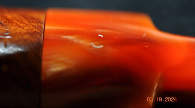 I took photos of the bowl and rim top to show how clean it was. The top and the inner edge of the rim look quite good with just some small scratches. The stem looks clean of debris and grime. There are light tooth marks and chatter on both sides of the stem.