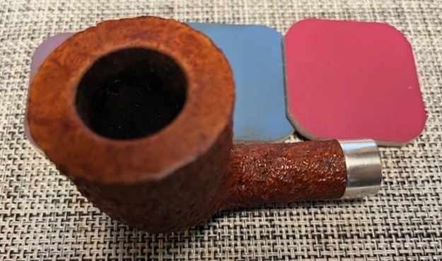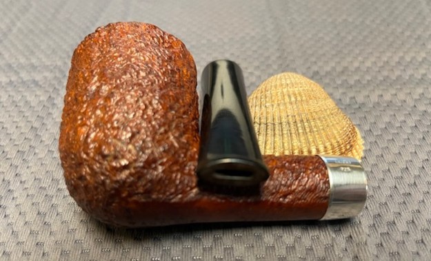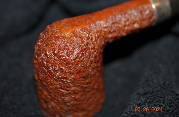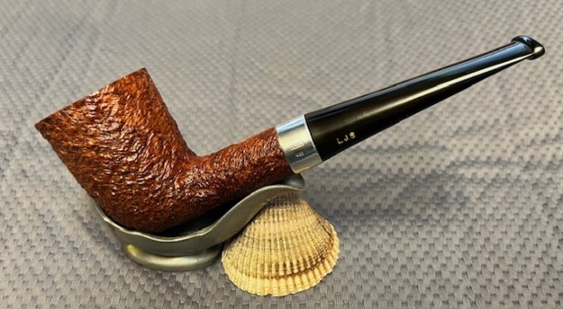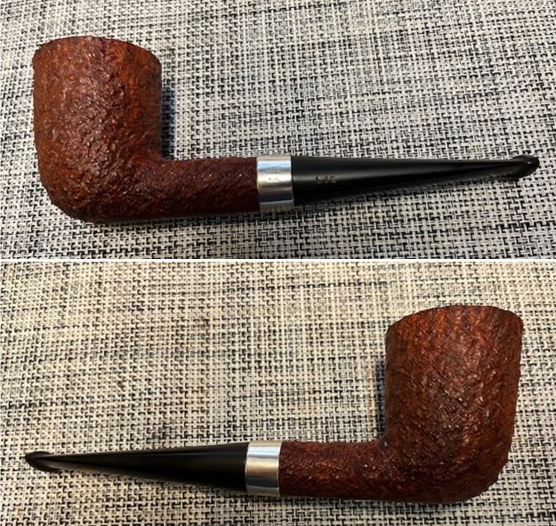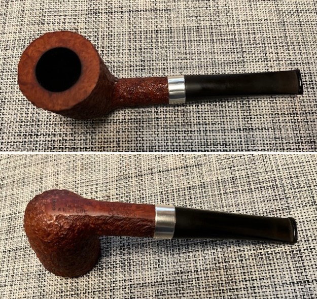 The first pipe pictured in the screen capture above is stamped similarly to mine. From that listing I learned that the 3 stars was the designation for the size of the pipe. This is largest pipe. The Bark finish is a designation used for both sandblasted and rusticated. I still need to unpack the Antique stamp but it is becoming very clear. The stem on this one is also not Cumberland but rather black vulcanite.