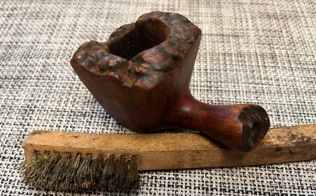 The next pipe on the table is a Danish looking Plateau Panel. We purchased it from fellow in Mount Pleasant, South Carolina, USA on 03/20/2024. He said that as far as he could tell it appeared to be unstamped. To me it looked like a Danish pipe but I could not identify it from the photos he sent me nor could he.