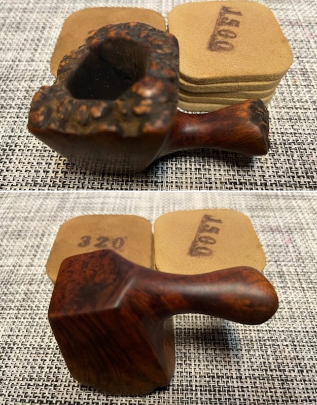 I sanded the bowl with 600-3500 grit sanding pads to even out the stain and smooth the surface of the briar.