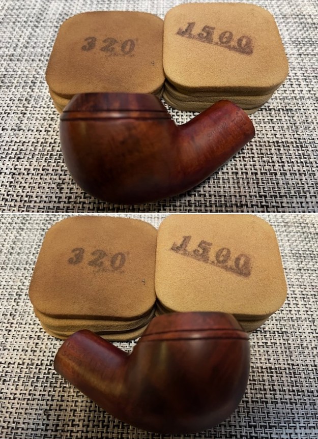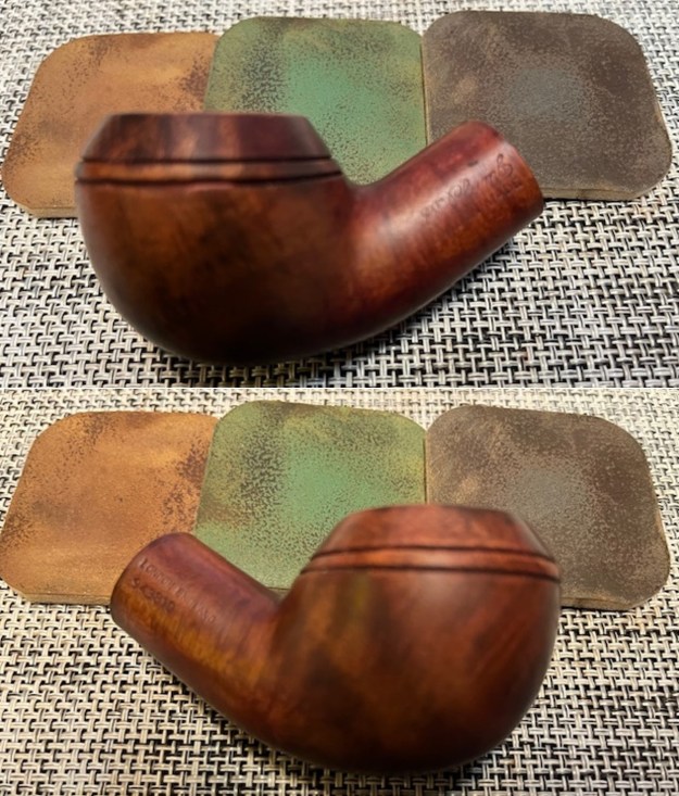 I took the loaded pipe up to my front porch and sat on chair there and enjoyed the amazing taste of a new to me tobacco. The draught on the pipe was flawless and the sandblast ring grain made the bowl a very cool smoking pipe even as it worked down the bowl.