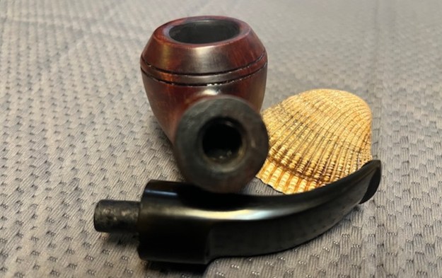 The tobacco I chose for the inaugural smoke is a limited-edition version of Seattle Pipe Club’s Plum Pudding pipe tobacco called Christmas Spirit. I love the Plum Pudding tobacco so when this tobacco was released I got a hold of a tin of Christmas Spirit 2023. The tobacco had been cured with Apple Brandy and there was a cut piece of the wooden Brandy barrel in the tin. It is described by the sellers as a holiday mixture perfect for the season even though I am smoking it out of season. It builds upon a foundation of Plum Pudding Special Reserve — complete with mature Orientals, Latakia, Virginias, Perique, and Black Cavendish —and is aged in apple brandy barrels.