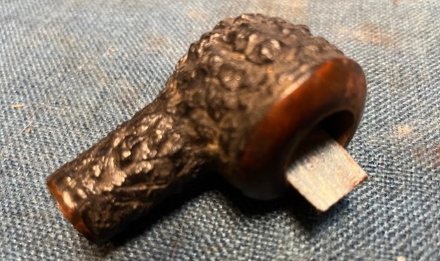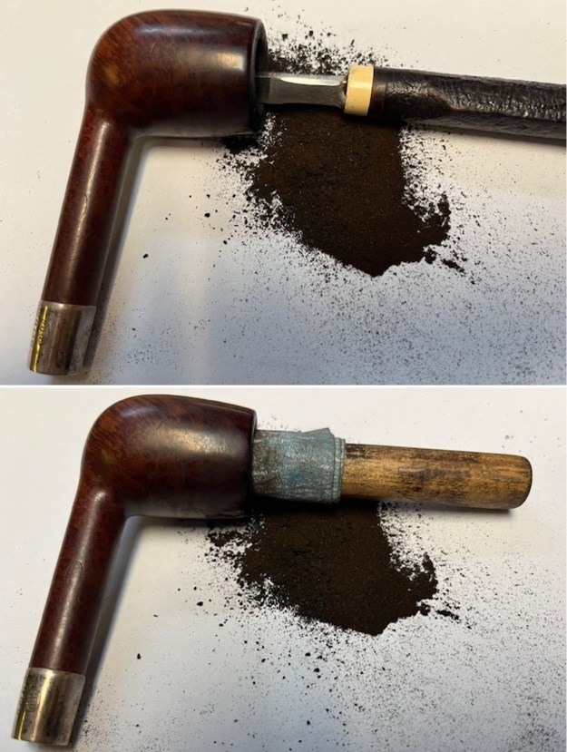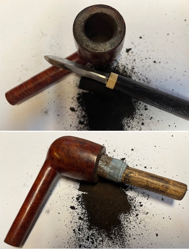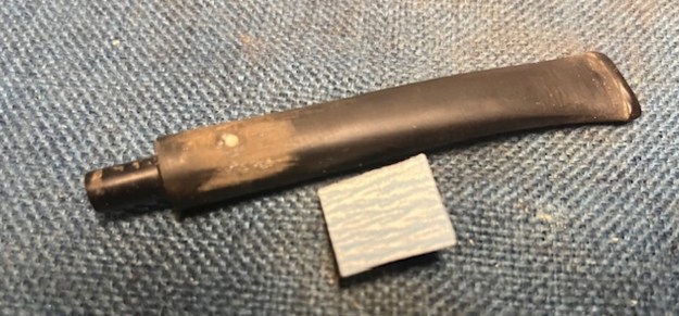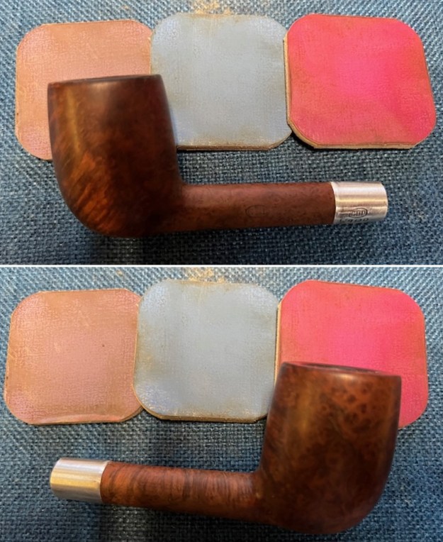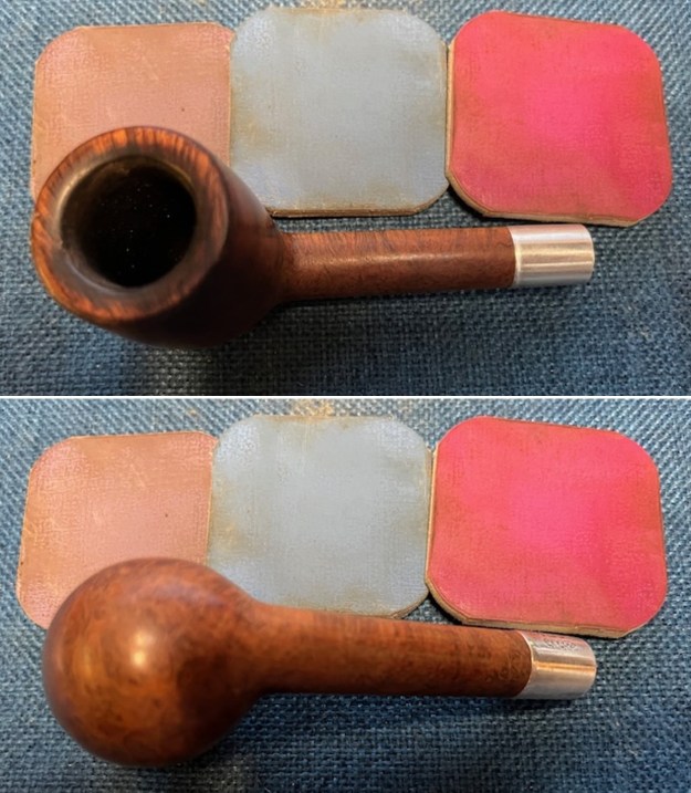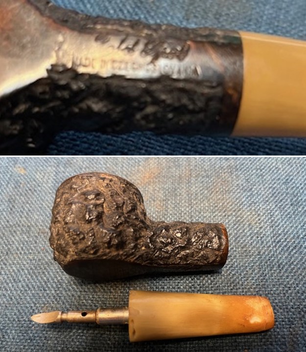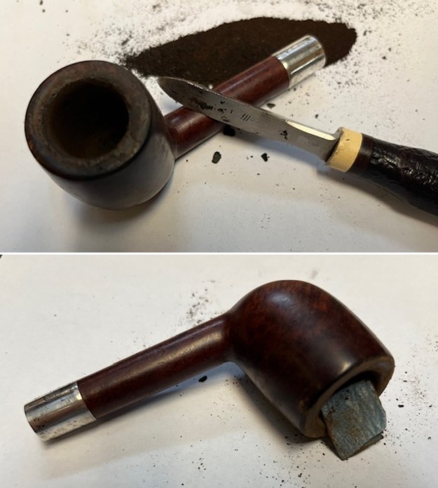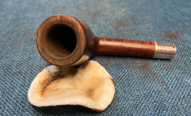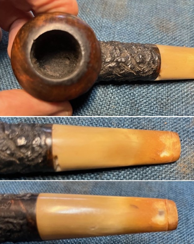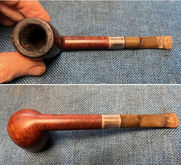 Now it was time to work on the pipe. I cleaned up the oxidized silver band with a jeweller’s cloth to remove the tarnish and protect it from further tarnish. There was more work to do but at least at this point I could read the stamping on it clearly.
