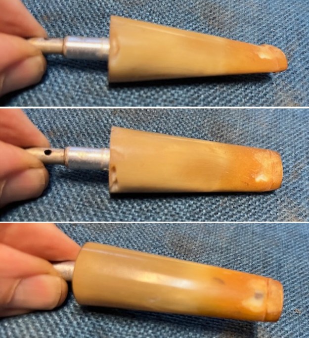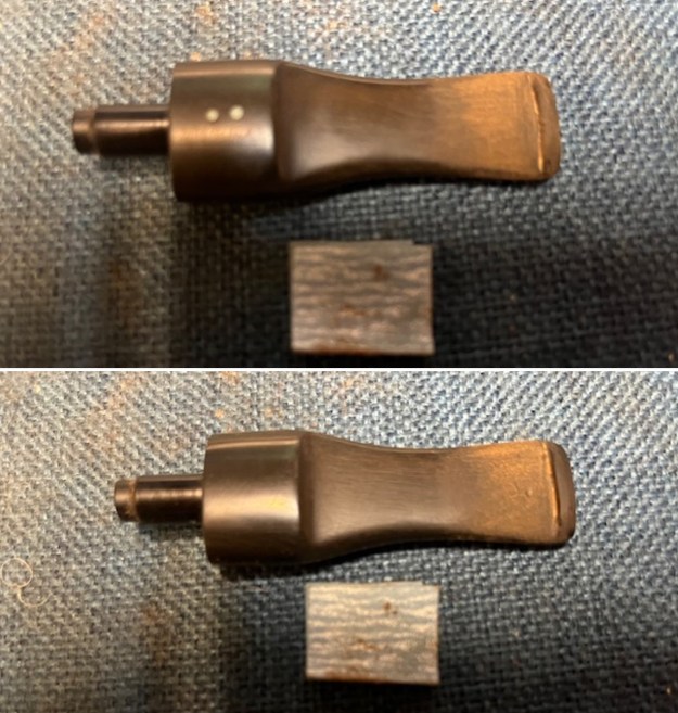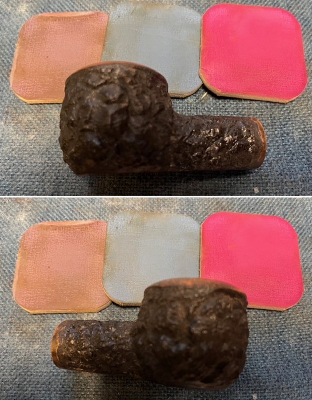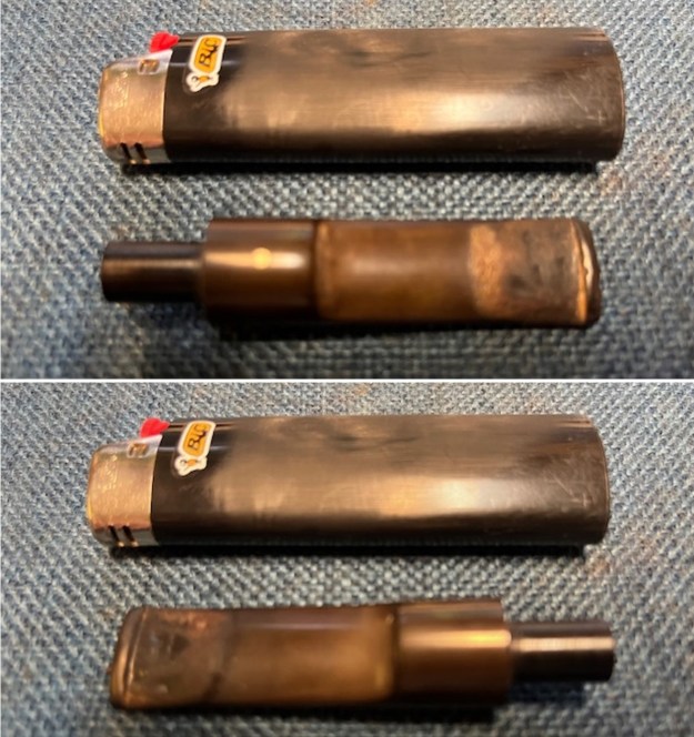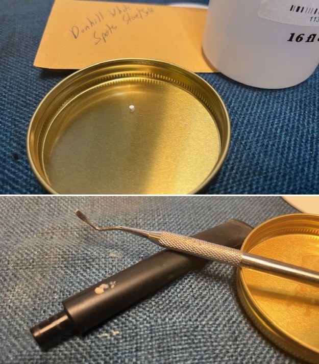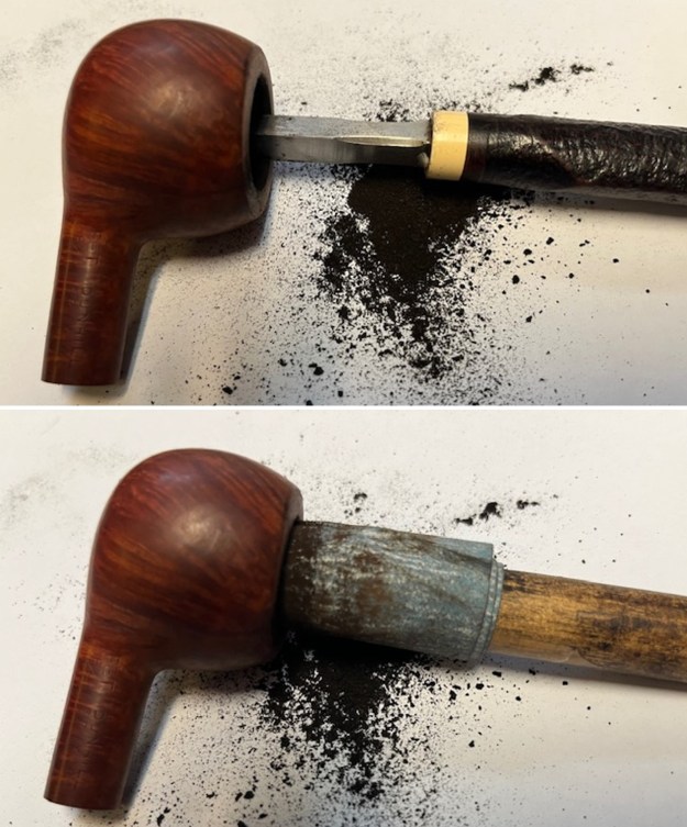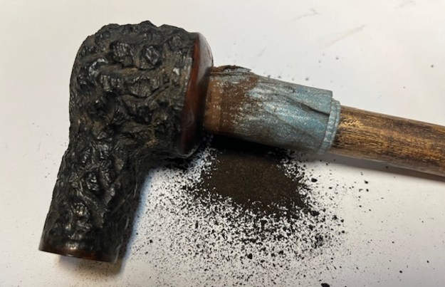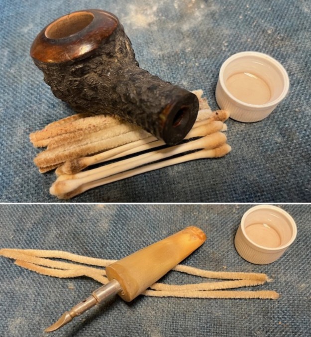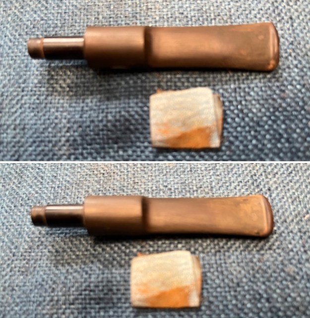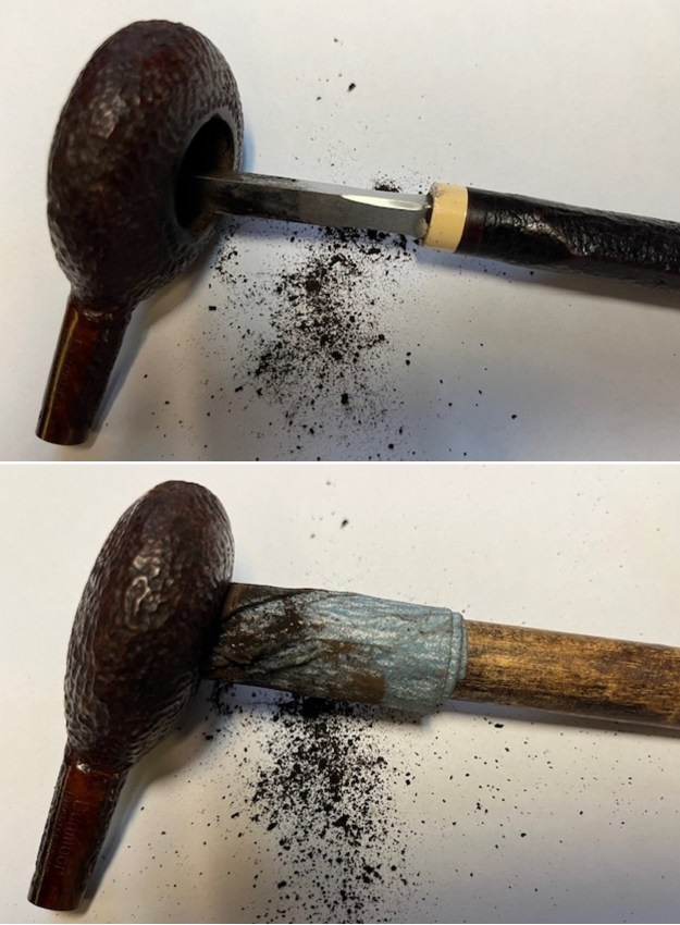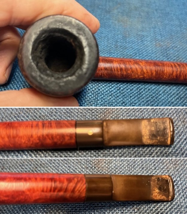 Now it was time to work on the pipe. I cleaned up the oxidized silver band with a jeweller’s cloth to remove the tarnish and protect it from further tarnish. There was more work to do but at least at this point I could read the stamping on it clearly.