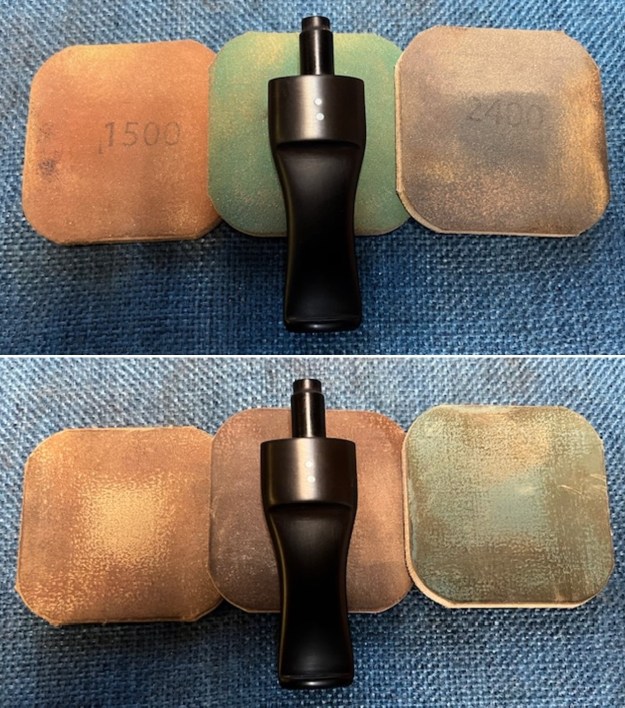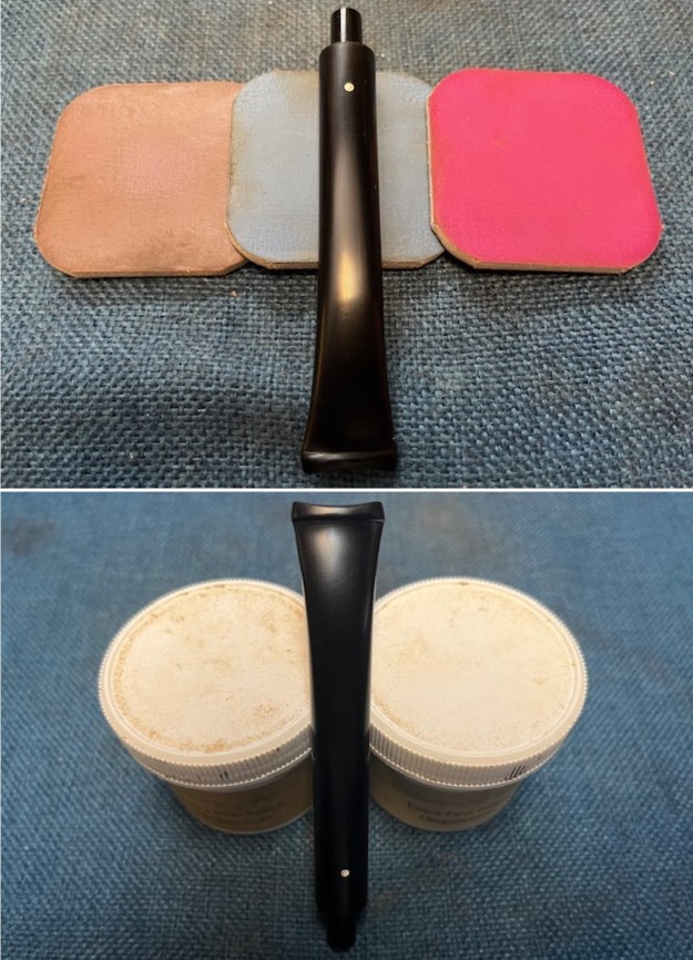 I sanded the stem with 320-3500 grit sanding pads to break up the remaining oxidation. I wiped it down after each sanding pad with an Obsidian Oil impregnated cloth. It began to look good.