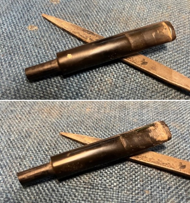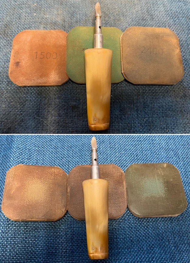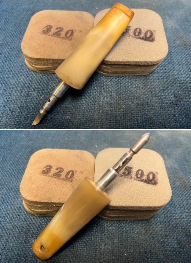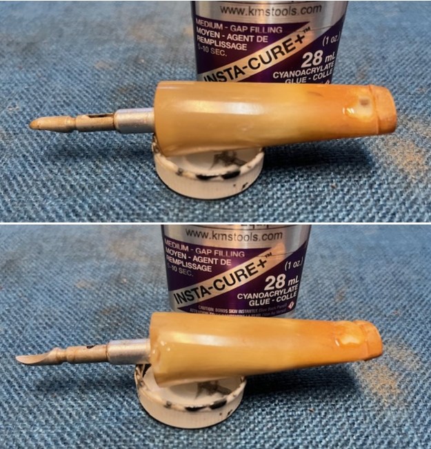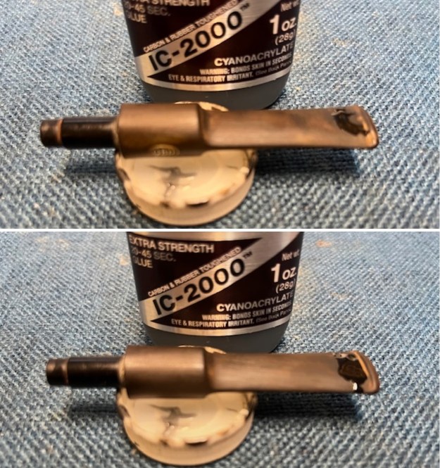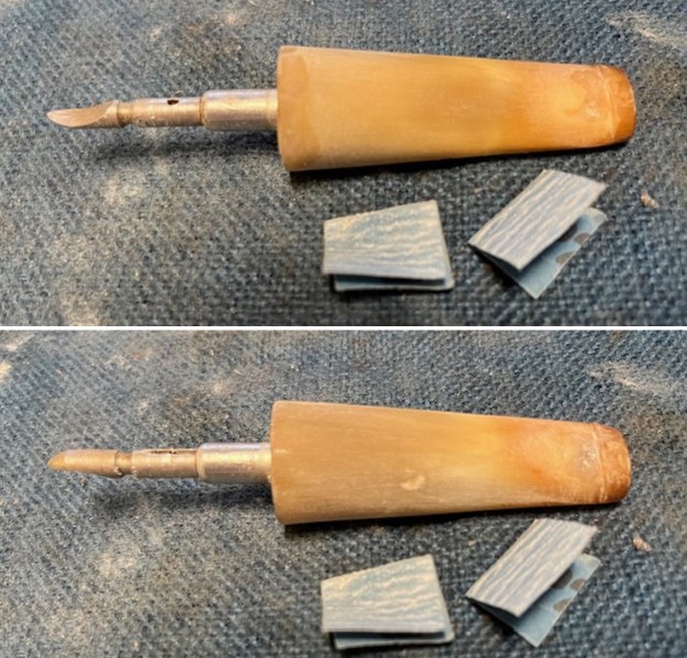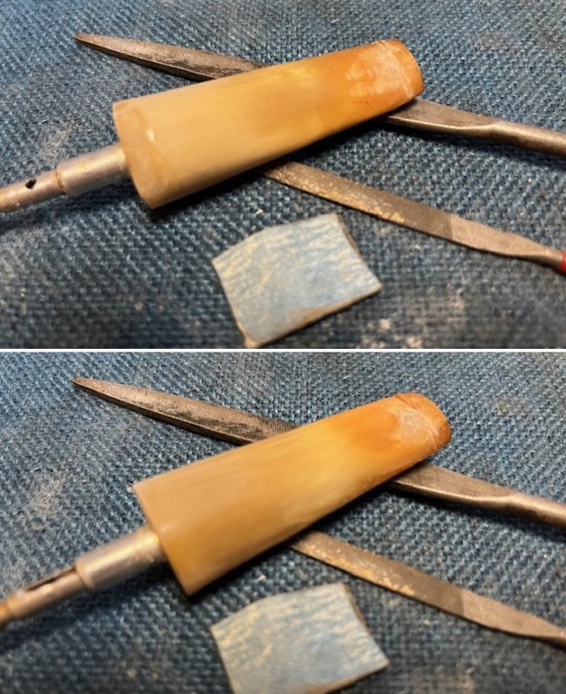 Once the repair had cured I sanded it smooth with a folded piece of 220 grit sandpaper. I was able to blend in the repair on the top of the stem. It looked much better and the repair was solid.
