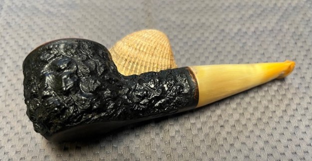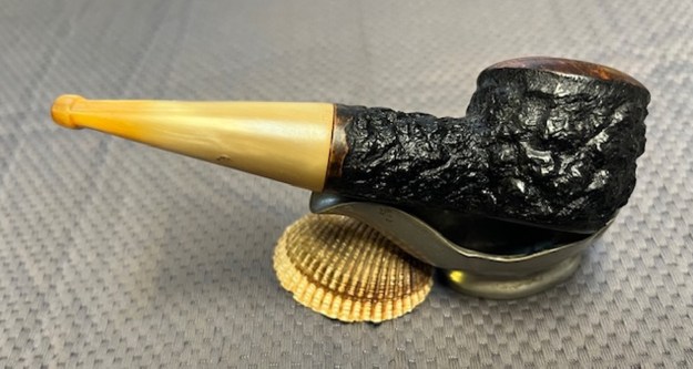 A deep craggy sandblast with a black stain finish (usually made using Algerian briar) – the color of the stain used has varied over the years. Although there is some doubt as to them being the first to sandblast pipes, Dunhill’s Shell pipes, and the sandblasting techniques developed to create them are considered one of Dunhill’s greatest and most lasting contributions to the art of pipe making.