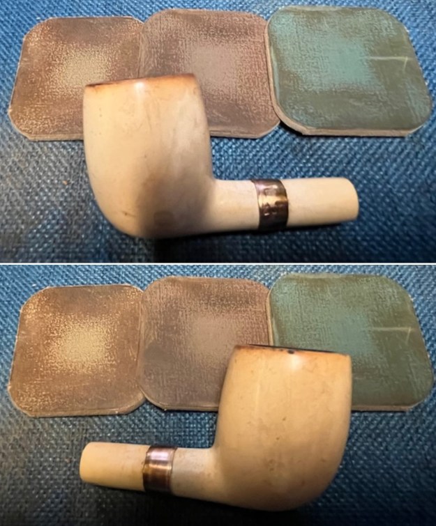 I set the bowl aside and turned my attention to the stem. I scrubbed the oxidation on the stem surface with Soft Scrub and cotton pads until it was much cleaner.