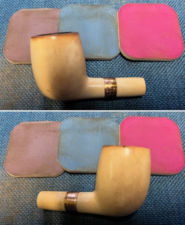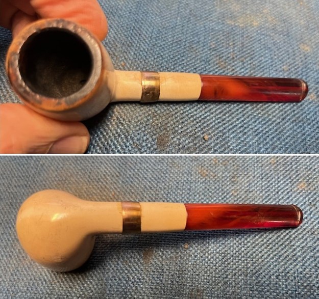 I took a photo of the pipe with the stem removed. It is definitely dirty and the silver and the stem both are oxidized.