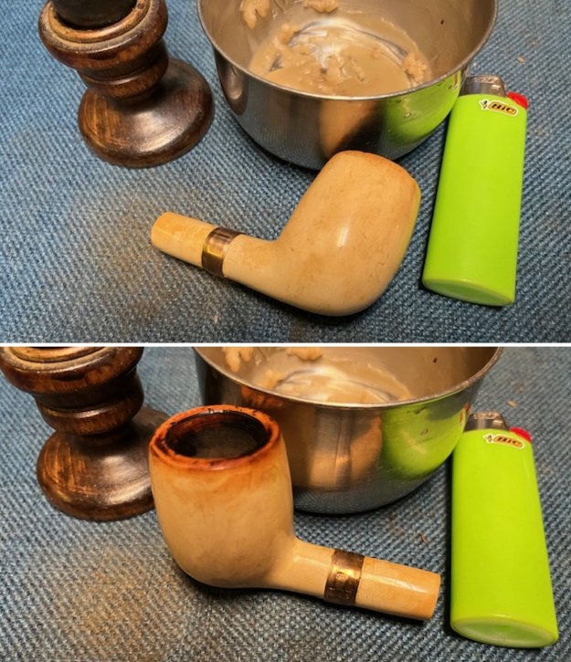 I polished the silver ferrule and the spigot end on the stem with a jeweller’s cloth to clean up and prevent further oxidation in the future. The contrast between the silver and the heavy rustication is very nice.