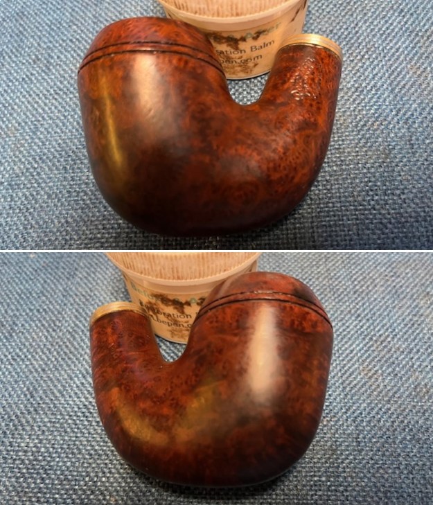At this point I rubbed the briar down with Before & After Restoration Balm. I worked it into the briar with my fingertips to work it into the finish. The product works to clean, enliven and preserve the briar. I let it sit for 10 minutes then I buffed it with a cotton cloth to deepen the shine. The briar really comes alive with the balm.