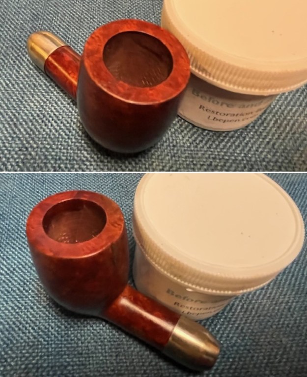 I polished the bowl with micromesh sanding pads – dry sanding with 1500-12000 grit pads and wiping down the bowl after each pad with a damp cloth. The briar took on a more natural shine than what was present when the bowl was varnished.