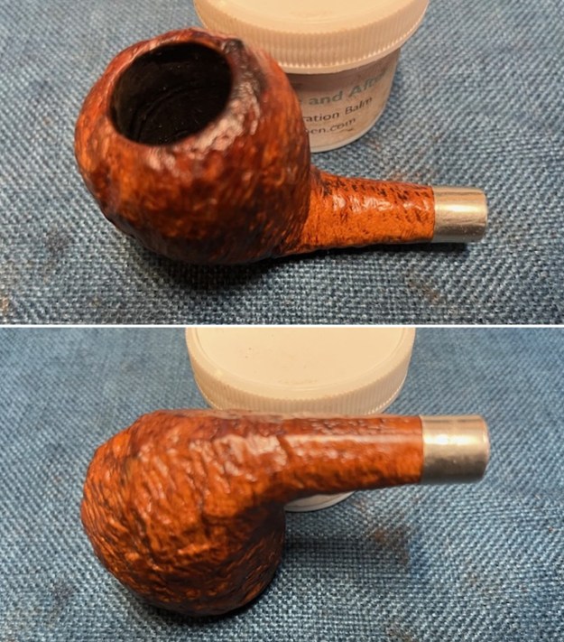 I took a photo of the bowl and rim top to show how well it had cleaned up. There is some rim darkening but you can see the rustication on the top of the bowl. The stem tooth marks and chatter are very light.
