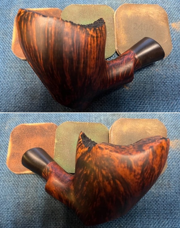 I polished the bowl with and shank extension with micromesh sanding pads – wet sanding with 1500-12000 grit pads. I wiped the briar down after each pad with a damp cloth. The bowl is starting to look very good.