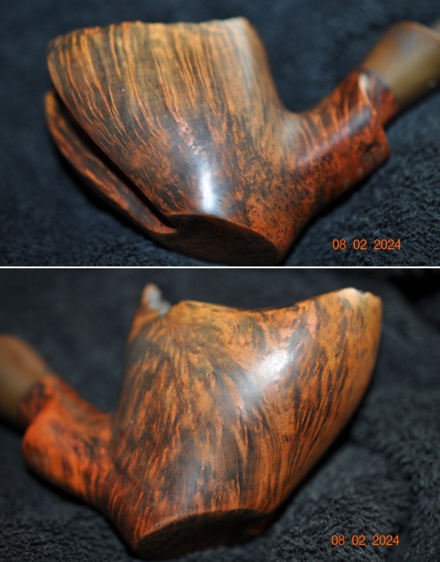 He took photos of the sides and heel of the bowl to show the lay of the grain around the pipe. It is a beautiful piece of briar. The top of the bowl is craggy and rugged looking. Unique! The shank end is also a unique mix of plateau and smooth.