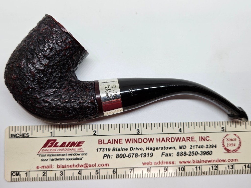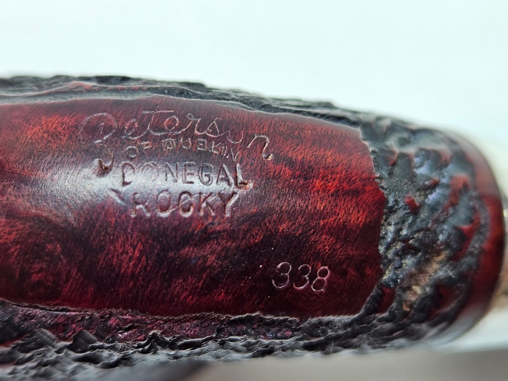 This Peterson Shape 338 caught my eye because it was a Donegal Rocky and came with a silver band. Peterson introduced this line in 1945 with a rusticated finish and two-tone stain. The rustication style has evolved over the decades.