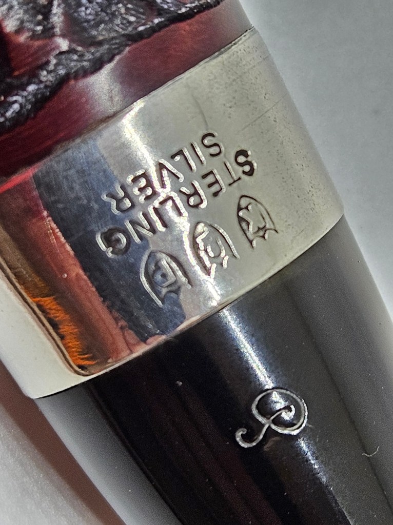 From 1891 through 1938 and 1969 to the present, Peterson’s silver-mounted pipes have carried three hallmarks: ‘Hibernia’ seated, arm on harp, for the country of manufacture; the ‘Harp Crowned’ (through 2002) or ‘.925’ (from 2003), designating sterling quality