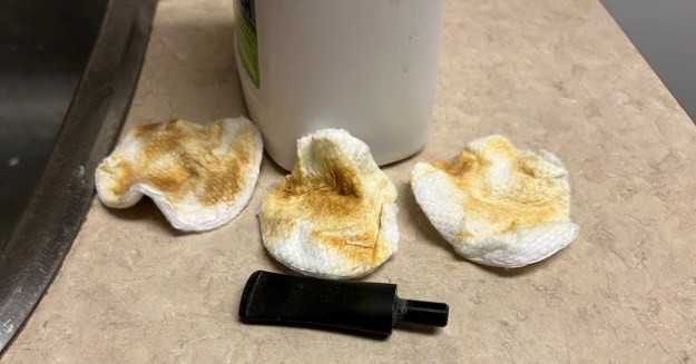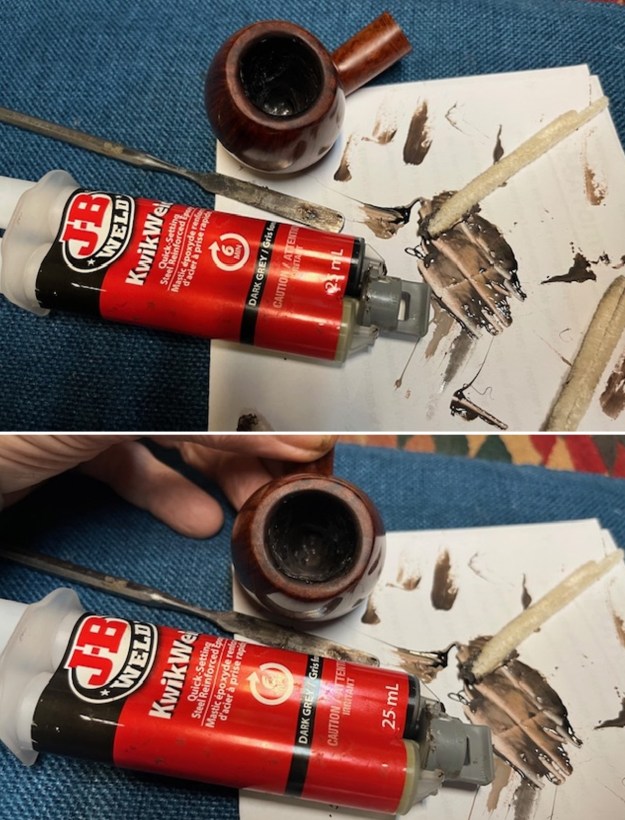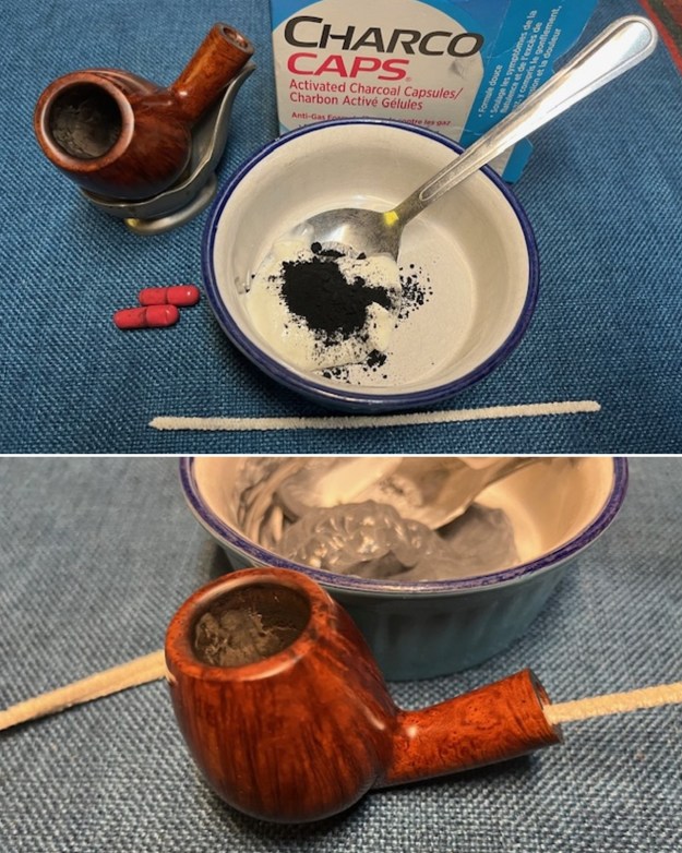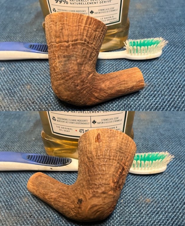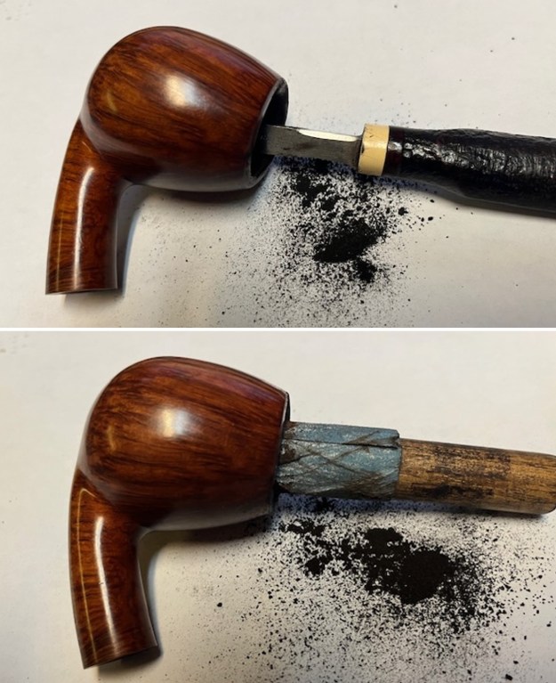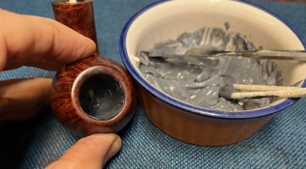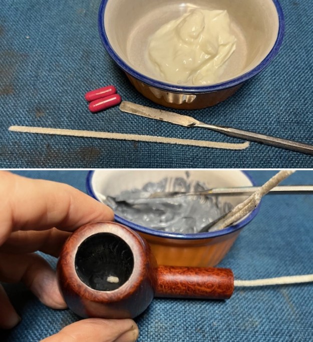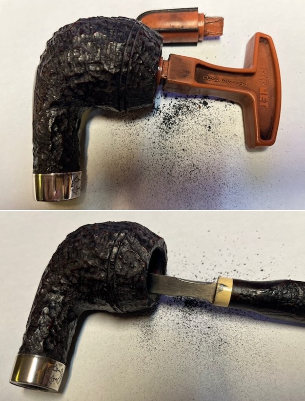 I cleaned out the stinky smelling tobacco oils and tars in the shank and the airway in the stem. I used 99% isopropyl alcohol, cotton swabs and pipe cleaners and was able to remove the debris and the stench.