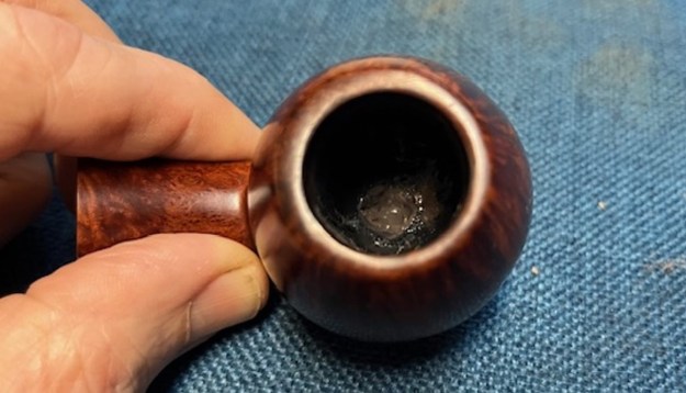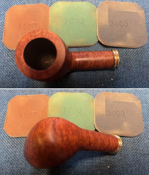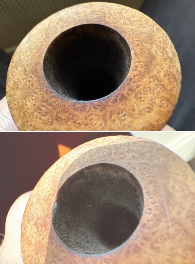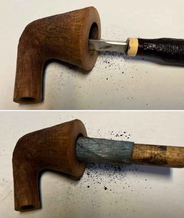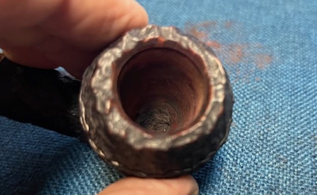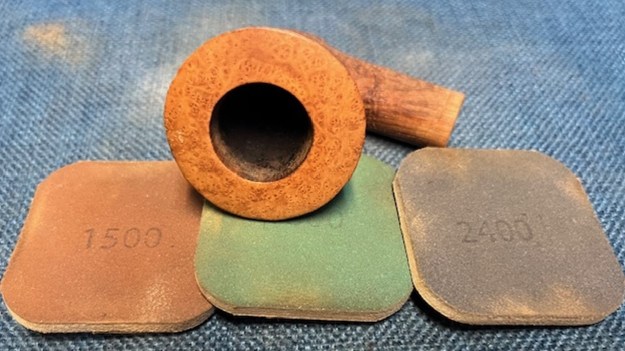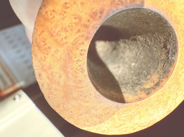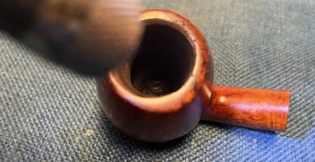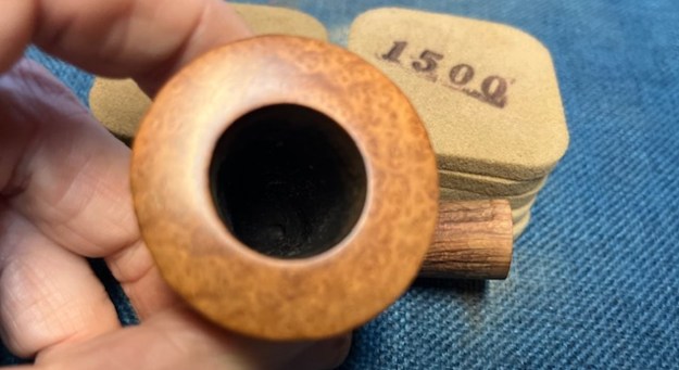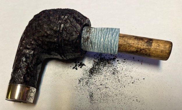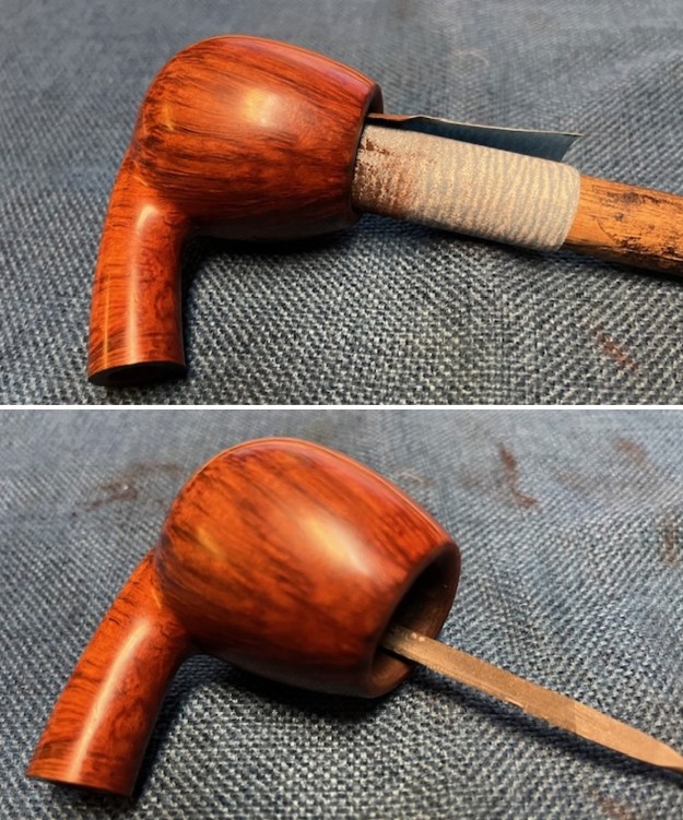 I reamed the bowl with a PipNet reamer and cleaned the reaming up with a Savinelli Fitsall Pipe Knife. I sanded the walls smooth with some 220 grit sandpaper wrapped around a piece of dowel. It looked much better. It was smooth to touch. I scraped the rim top with the edge of the Savinelli Fitsall to remove the lava build up.