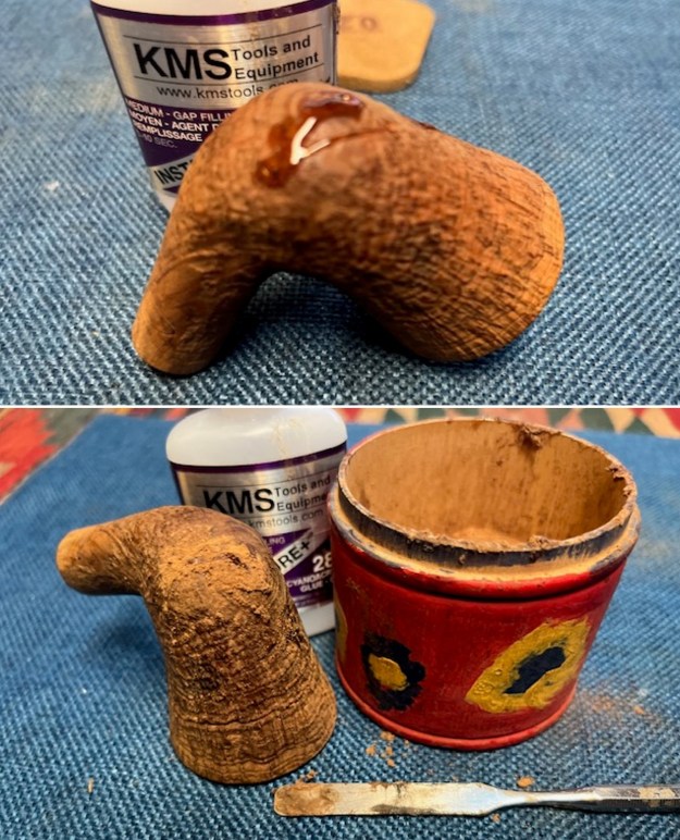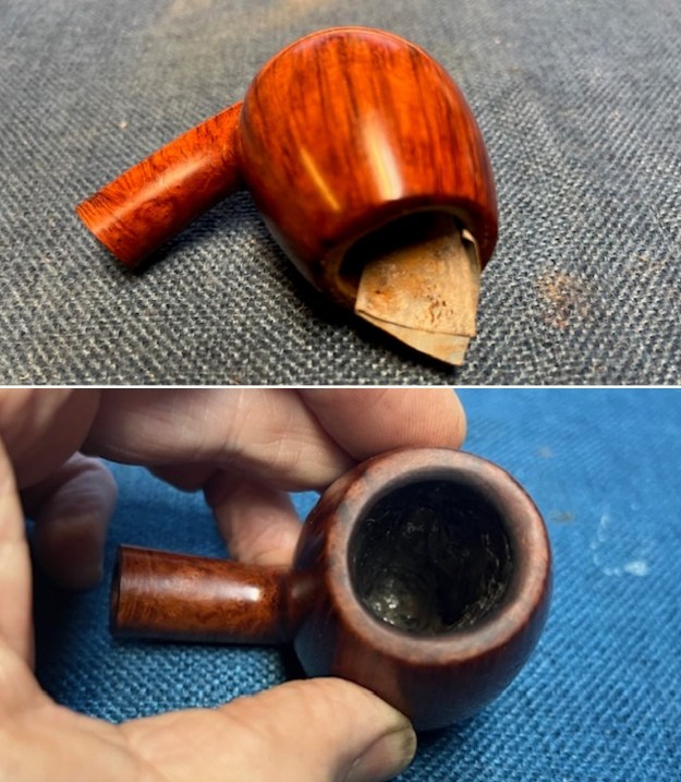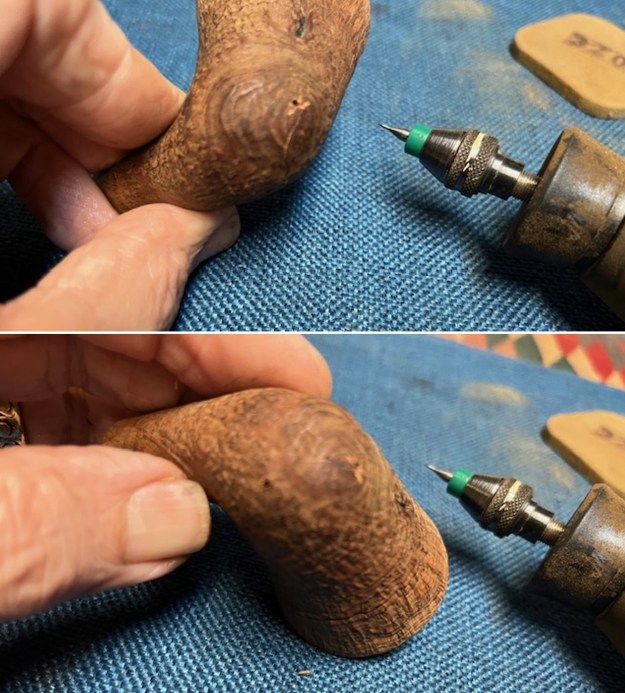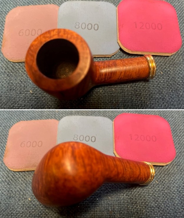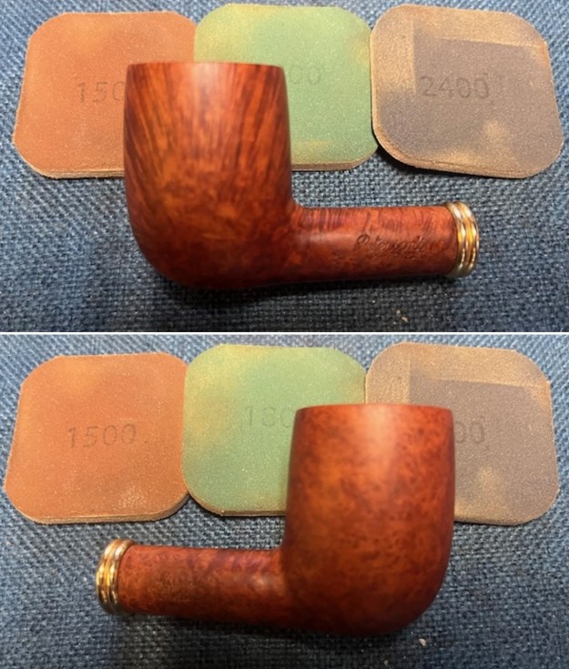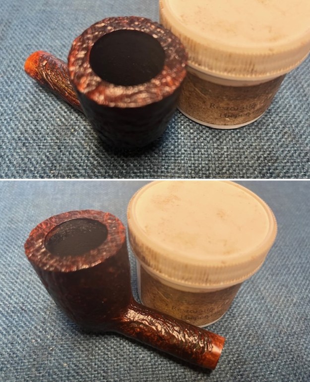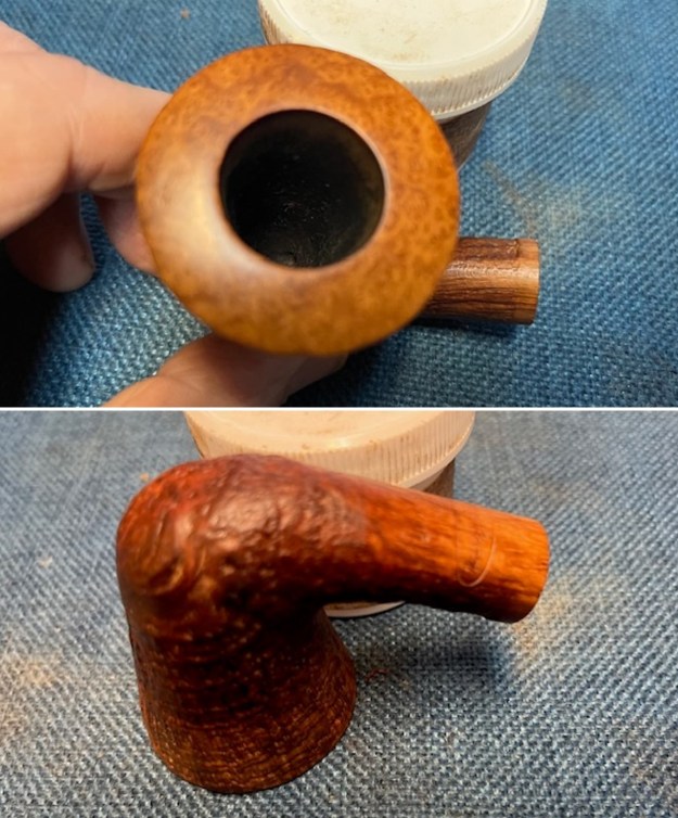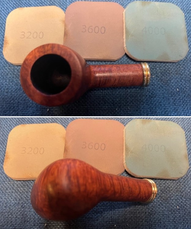 I reamed the bowl with a PipNet reamer and cleaned the reaming up with a Savinelli Fitsall Pipe Knife. I sanded the walls smooth with some 220 grit sandpaper wrapped around a piece of dowel. It looked much better. It was smooth to touch. I scraped the rim top with the edge of the Savinelli Fitsall to remove the lava build up.