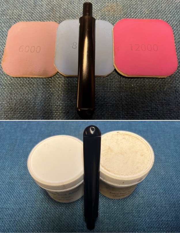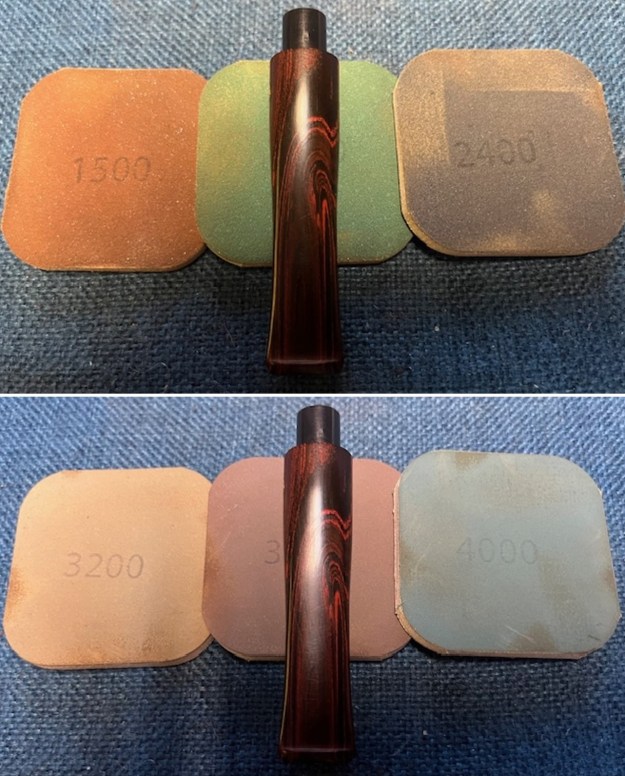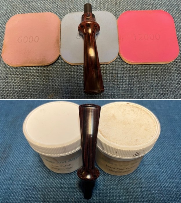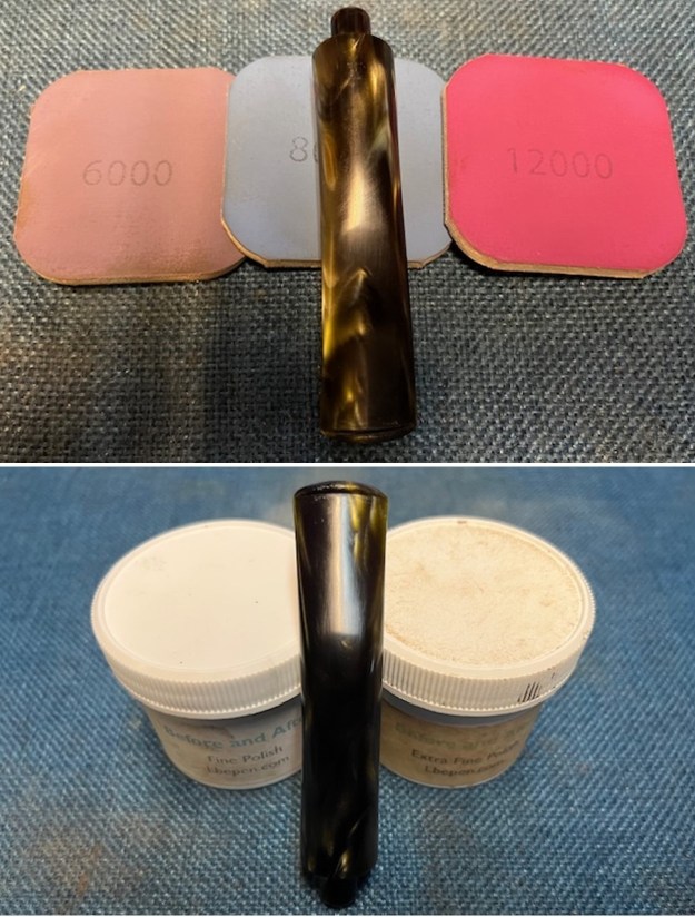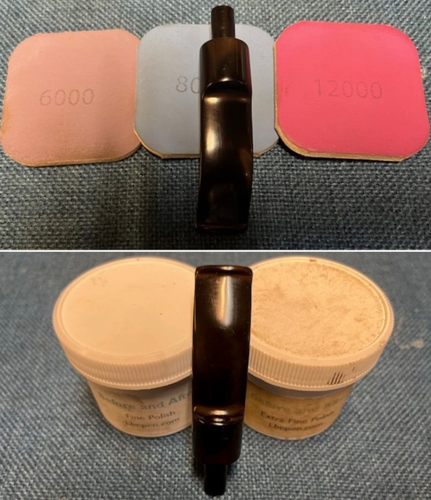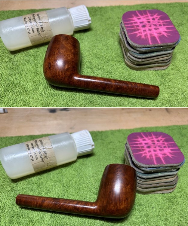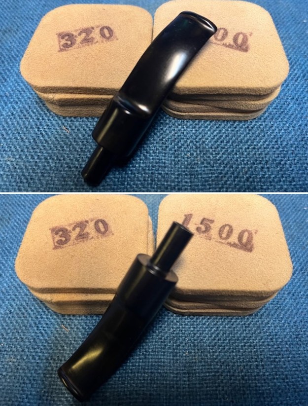I polished the stem with micromesh sanding pads – dry sanding with 1500-12000 grit sanding pads. I wiped it down after each sanding pad with Obsidian Oil. I polished it with Before & After Pipe Stem Polish – both Fine and Extra Fine. I wiped the stem down a final time with Obsidian Oil once again and set it aside to dry.