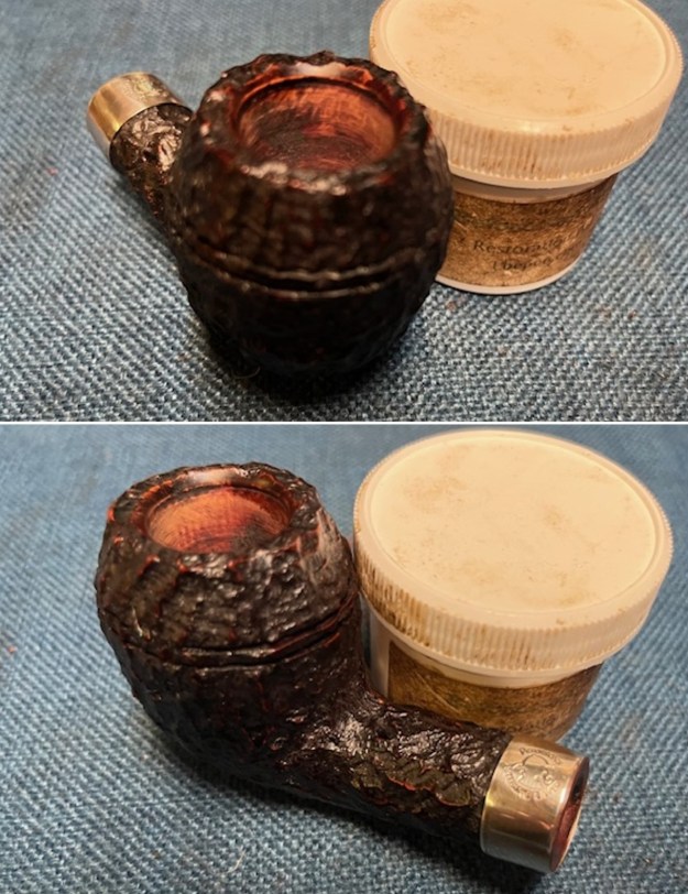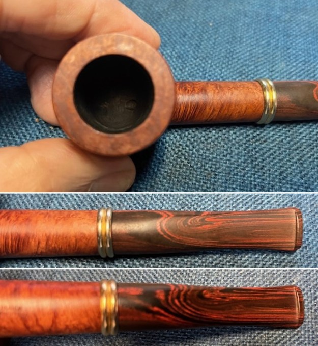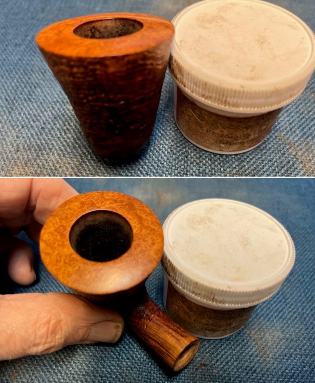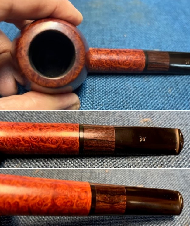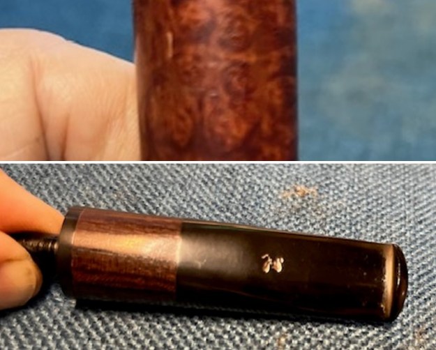 I took photos of the Sterling Silver ferrule to show the stamping around it. You can see that it reads as noted above. I did not capture the hallmarks on the underside. I removed the stem from the shank and took a photo of the parts of the pipe to give a sense of the proportion of the pipe.