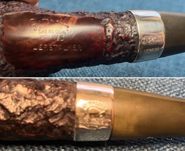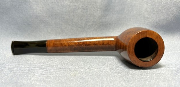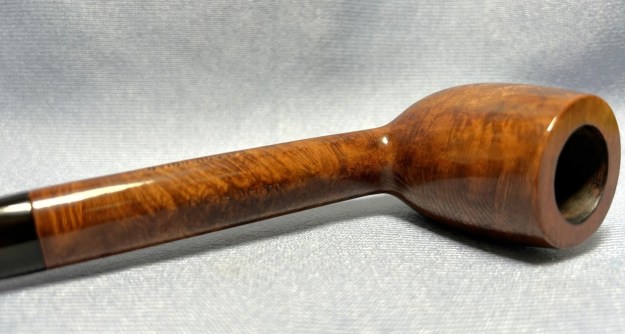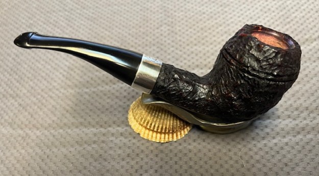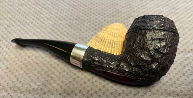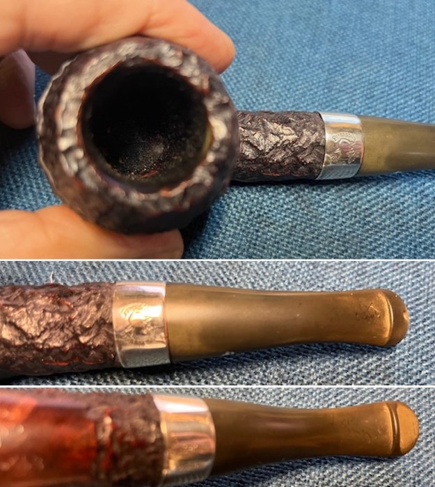 I know that the pipe was made on the Isle of Man by Laxey Pipe Ltd. out of African Meerschaum. It was made for export for Peterson’s of Dublin. From the hallmarks on the silver I know that the pipe (or at least the silver) was made in 1990. The flumed top on the bowl seems to make it older and maybe it is but the silver is definitely from 1990. That was as much as I could figure out.