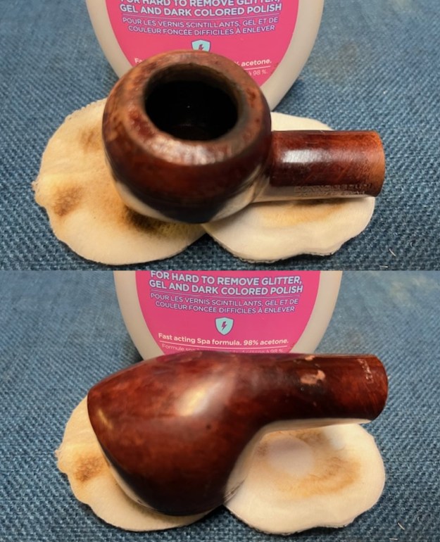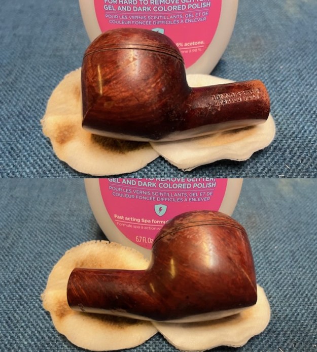 I rubbed the bowl down with Before & After Restoration Balm. I worked it into the surface of the briar with my fingertips. It works to clean, restore and preserve the briar. I let it do its magic for 15 minutes then buffed it off with a cotton cloth. The pipe looks incredibly good at this point in the process.