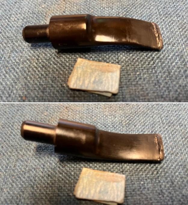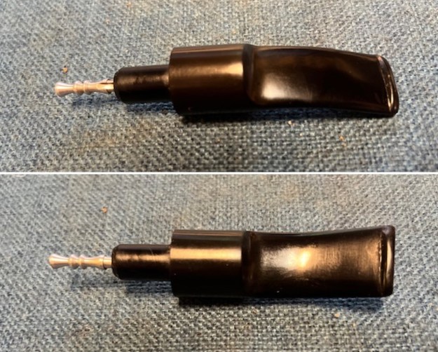 I polished the stem with micromesh sanding pads – 1500-12000 grit pads. I wiped it down with a damp cloth after each sanding pad. I finished polishing it with Before & After Pipe Stem Polish – both Fine and Extra Fine and buffed it off with a cotton cloth. I gave it a coat of Obsidian Oil to preserve and protect the stem.