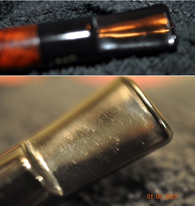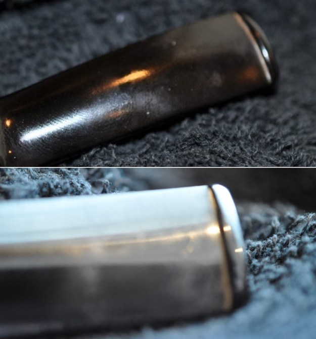 Just like other pipes, I cleaned the insides thoroughly with cotton swabs dipped in 99% lemon-infused isopropyl alcohol. This wasn’t enough – I also cleaned the inside of the aluminum with my cream cleanser and some tube brushes. That worked well! I then used my grey micromesh pads and polished the metal to a beautiful shine. Boy, it looked terrific after that.