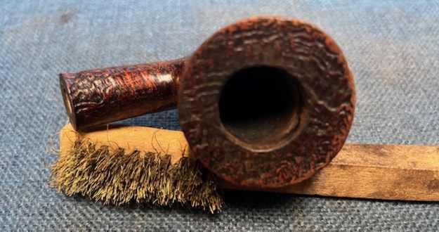 To tidy up the briar, I also wiped down the outside with some oil soap on cotton rounds (and a toothbrush). This does a good job of cleaning any latent dirt on the surface of the briar. The last step of the cleaning process is to scour the inside of the stummel with some soap and tube brushes. This is the culmination of a lot of hard work in getting the bowl clean.
