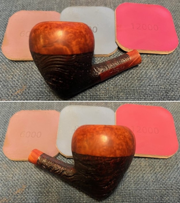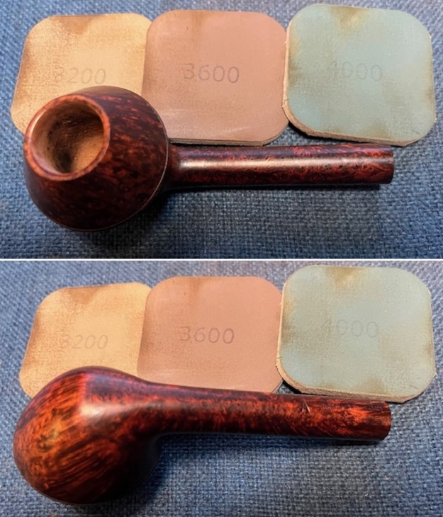 For the final step, I took the bowl to my bench buffer and carefully polished it – first with a white diamond compound, then with three coats of carnauba wax. This procedure makes the pipe look its best – the stummel sings and the stem glows.