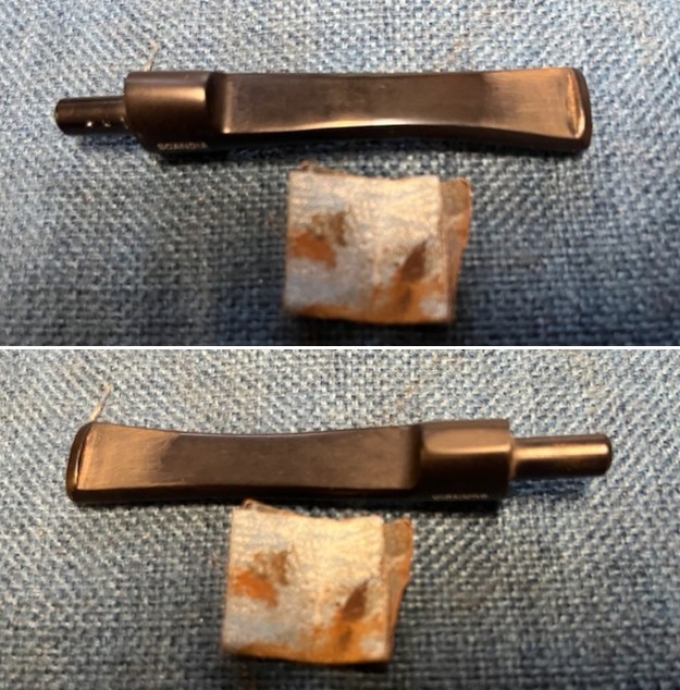 On to the stem. I cleaned the inside with both pipe cleaners and cotton swabs dipped in 99% lemon-infused isopropyl alcohol. I scrubbed thoroughly to make sure the interior was clean.