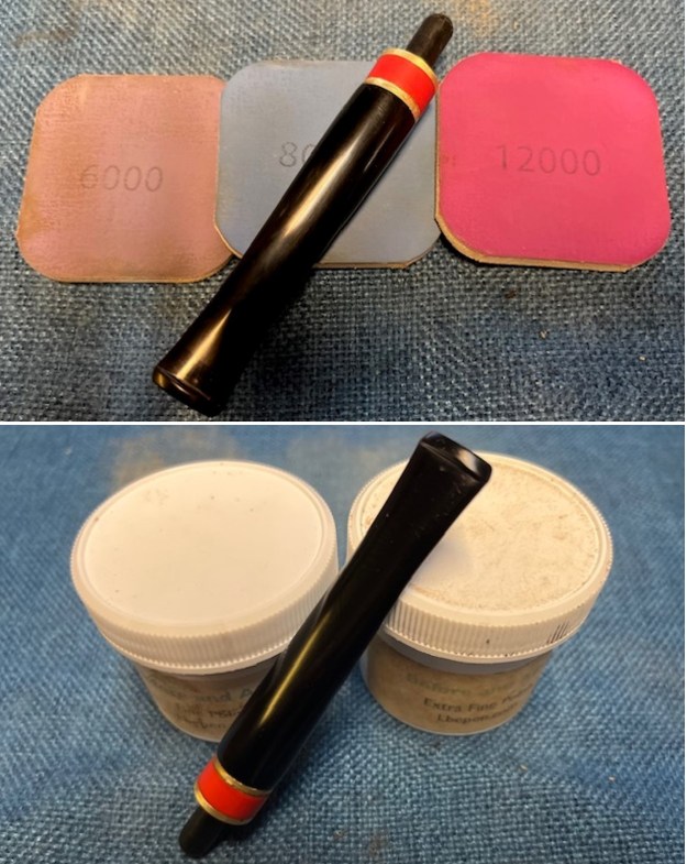 I polished the stem with micromesh sanding pads – dry sanding it with 1500-12000 grit pads. I wiped it down after each sanding pad with a cloth impregnated with Obsidian Oil. The stem looked very good.