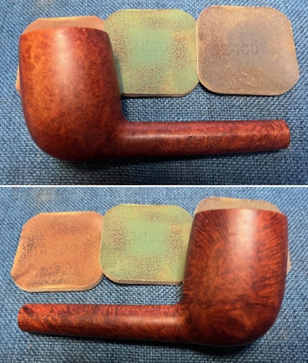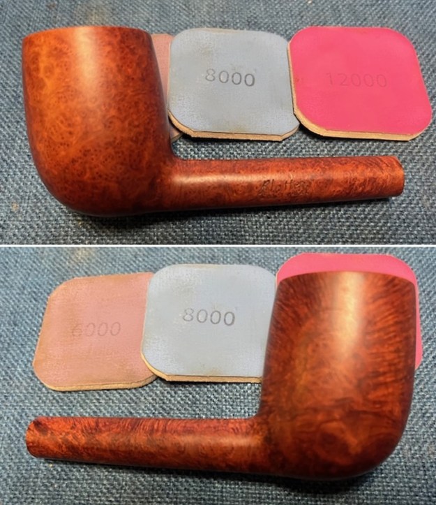 I polished the bowl and shank with 1500-12000 grit micromesh sanding pad – dry sanding it with the pads. I wiped the bowl down with a damp cloth after each pad. It began to take on a deep shine.