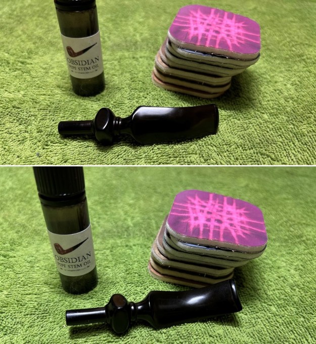 I polished the stem with micromesh sanding pads – dry sanding with 1500-12000 grit sanding pads. I wiped it down after each sanding pad with Obsidian Oil. I polished it with Before & After Pipe Stem Polish – both Fine and Extra Fine.