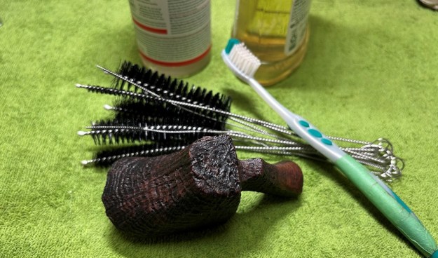 In terms of the pipe that I am working on I concur with Dal’s conclusions on the Thompson pipe he restored. This one is also a Laxey Made pipe using the African Meerschaum. The rusticated finish is precisely like some of the Laxey Peterson’s Meerschaums that I have worked on. It has a lot of promise to it.