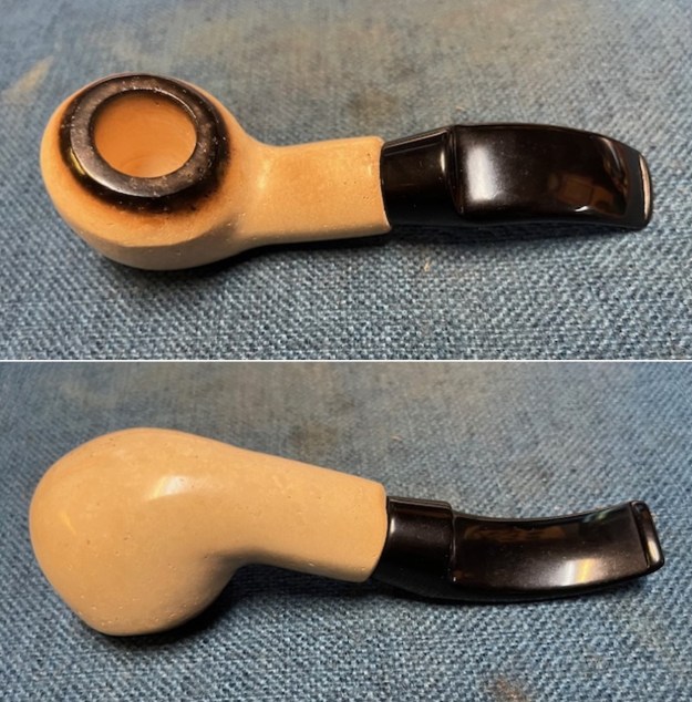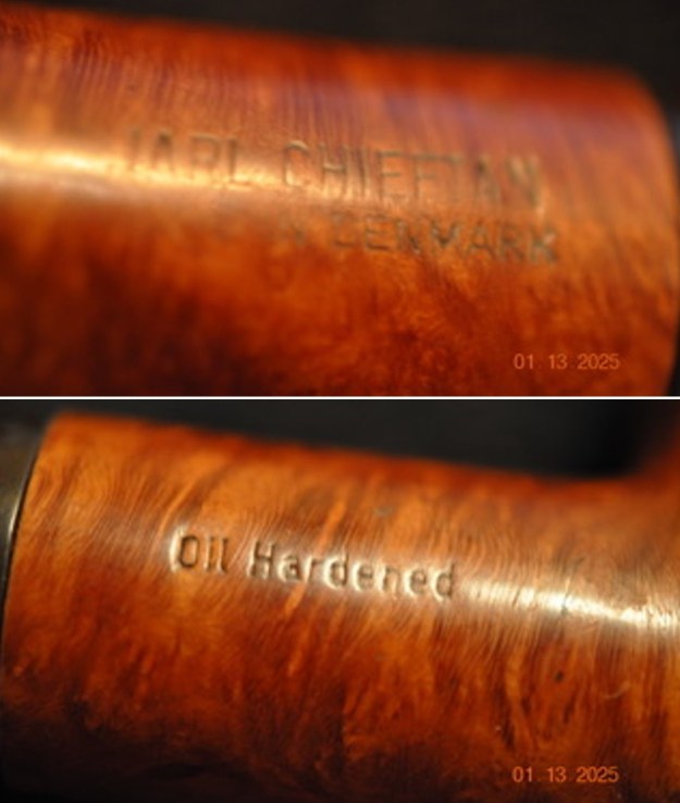 He took photos of the sides of the shank to show the stamping. The stamping is readable in the photos below and is as noted above. You can see that there is some shrinkage on the spacer on the stem end and the acrylic one on the shank end. This is puzzling at the moment to me.