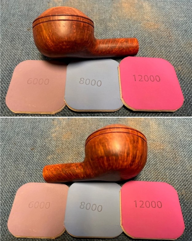 I polished the briar with 1500-12000 grit micromesh sanding pads. I dry sanded it and then wiped it down after each sanding pad to remove the sanding dust. It began to take on a shine.