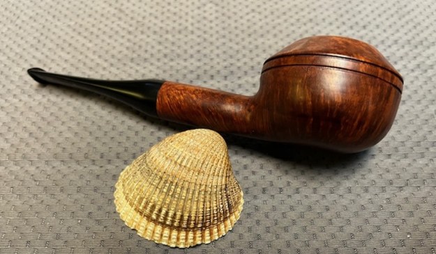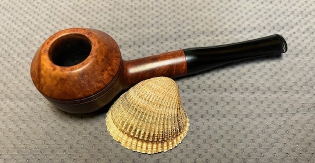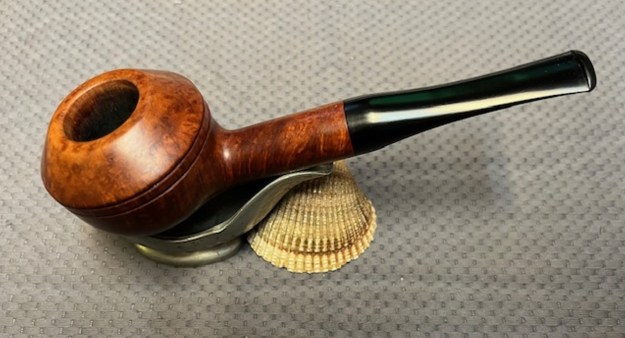 With the burned out bowl repaired, the bowl cleaned and restored I put the polished stem back on the shank. The Peterson’s Kapmeer 407 Prince looked beautiful. Even the repaired burnout on the bottom of the bowl looked interesting with the dark ring around it on the bowl bottom. I buffed the pipe Blue Diamond on the buffing wheel and worked over the briar and the vulcanite with it. The buffer brought out a rich shine on the bowl and stem. I gave it multiple coats of Carnauba wax and then buffed it with a clean buffing pad. I had buffed the pipe with a soft cloth to deepen the shine. It is fun to see what the polished bowl looks like with beautiful mixed grain all around it. The pipe looks great with the black vulcanite stem. This smooth Peterson’s Kapmeer 407 Meerlined Prince is great looking and the pipe feels great in my hand. It is light and well balanced. Have a look at it with the photos below. The dimensions are Length: 6 inches, Height: 1 ¼ inches, Outside diameter of the bowl: 1 ¼ inches, Chamber diameter: ¾ of an inch. The weight of the pipe is 29 grams/0.99 ounces. It turned out to be a beautiful pipe. I will be sending it back to Jake soon. He is looking forward to enjoying it once again. Thanks for walking through the restoration with me as I worked over this pipe. Thanks to each of you who are reading this blog.