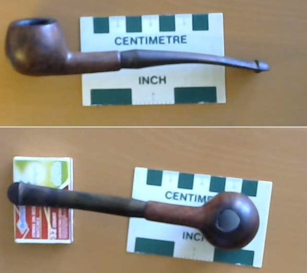 Several months ago, now I received an email from Jake about a Peterson’s Prince that he had that had a burnout in the bottom of the bowl. I asked him to send me photos of the pipe so that I could see what the issues were with the pipe. The photos showed the large hole in the bottom of the bowl. The hole is the same diameter as the inner walls of the bowl by the looks of the photo. I did not know what the brand mark on the pipe was as we never spoke about it. My guess about it was that the stem made me think of a Dunsmore or perhaps a Kapmeer pipe. We talked about it and what it would cost to restore it. Jake said he would send it up for work. Time passed and I really forgot about the pipe then on the weekend Jake wrote that he was mailing it. I told him I would keep an eye out for it and early this week the pipe arrived. Here are the photos that Jake sent me to show me the damage.
