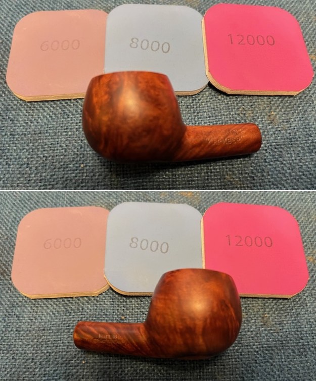 I polished the briar with 1500-12000 grit micromesh sanding pads. I dry sanded it and then wiped it down after each sanding pad to remove the sanding dust. It began to take on a shine.