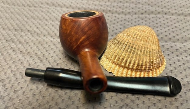With the burned out bowl repaired, the bowl cleaned and restored I put the polished stem back on the shank. The Peterson’s Kapmeer 407 Prince looked beautiful. Even the repaired burnout on the bottom of the bowl looked interesting with the dark ring around it on the bowl bottom. I buffed the pipe Blue Diamond on the buffing wheel and worked over the briar and the vulcanite with it. The buffer brought out a rich shine on the bowl and stem. I gave it multiple coats of Carnauba wax and then buffed it with a clean buffing pad. I had buffed the pipe with a soft cloth to deepen the shine. It is fun to see what the polished bowl looks like with beautiful mixed grain all around it. The pipe looks great with the black vulcanite stem. This smooth Peterson’s Kapmeer 407 Meerlined Prince is great looking and the pipe feels great in my hand. It is light and well balanced. Have a look at it with the photos below. The dimensions are Length: 6 inches, Height: 1 ¼ inches, Outside diameter of the bowl: 1 ¼ inches, Chamber diameter: ¾ of an inch. The weight of the pipe is 29 grams/0.99 ounces. It turned out to be a beautiful pipe. I will be sending it back to Jake soon. He is looking forward to enjoying it once again. Thanks for walking through the restoration with me as I worked over this pipe. Thanks to each of you who are reading this blog.