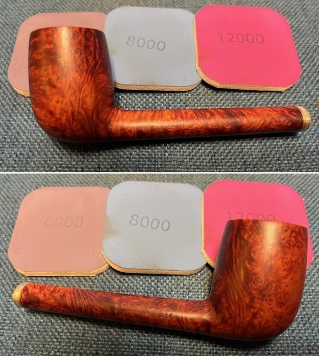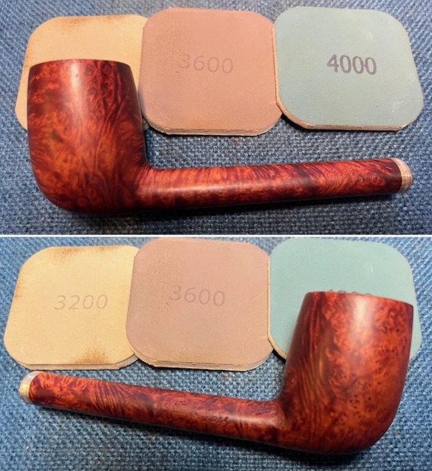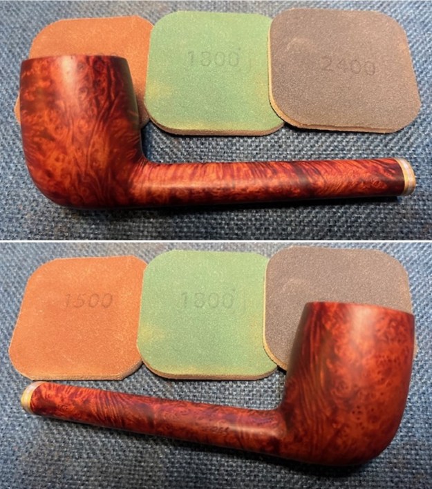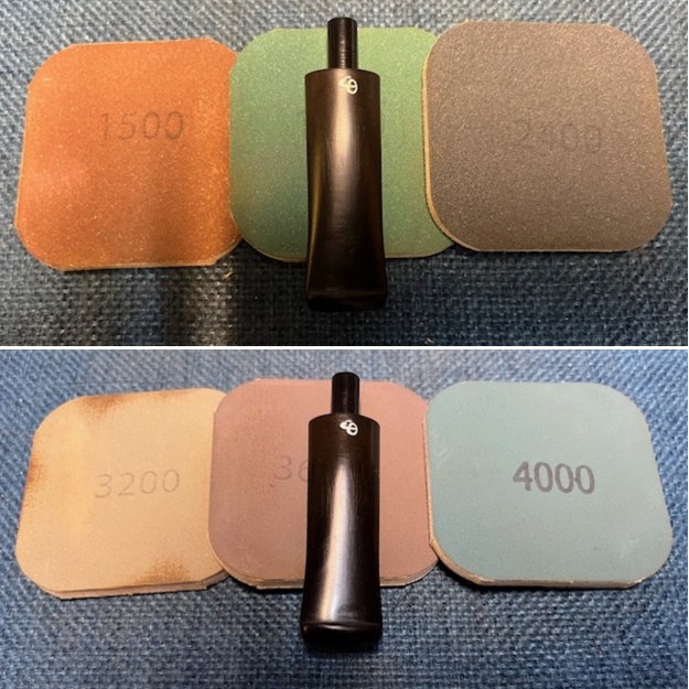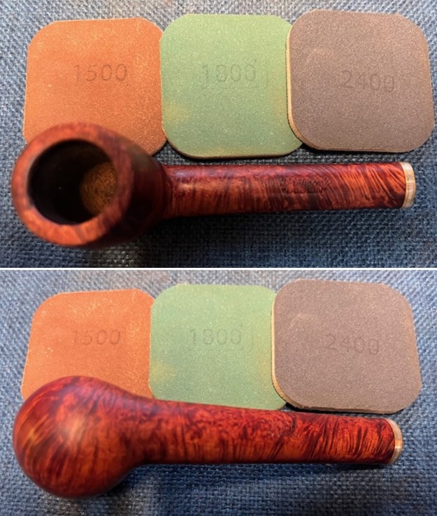 I polished the briar with micromesh sanding pads – dry sanding with 1500-12000 grit sanding pads. I wiped the bowl down with a damp cloth after each sanding pad.