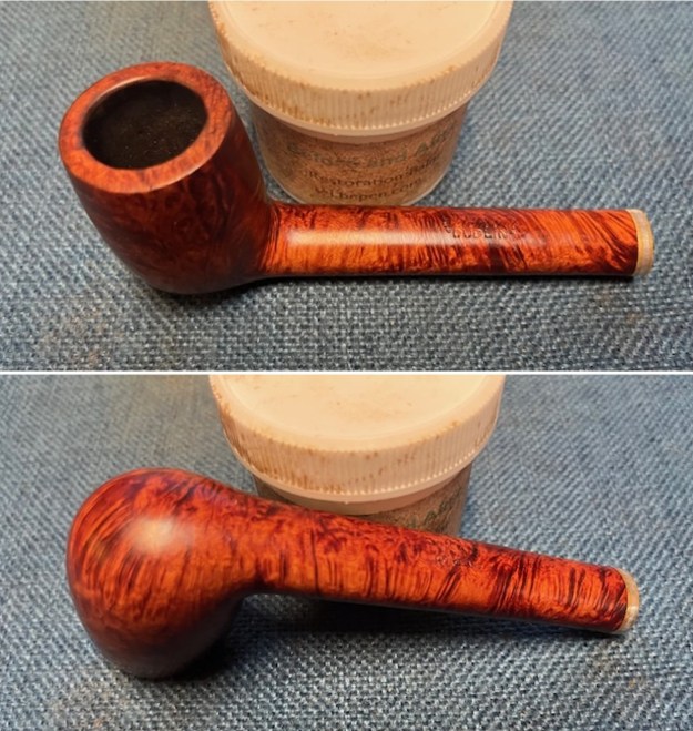 I worked some Before & After Restoration Balm into the surface of the briar with my fingertips. It works to clean, enliven and protect the briar. I let it sit for 15 minutes then buffed it off with a soft cloth and raised the shine. The bowl looks great at this point.